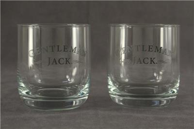 VINTAGE Advertising Barware 2PC Lot Gentleman Jack Silver ACL Rocks Glasses. The glasses measure 3.5" tall and 3" wide. No chips or cracks. No smoke or pet odor.