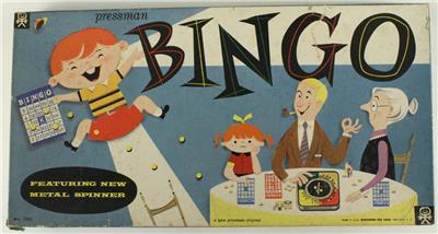 Vintage Family Toy Board Game PRESSMAN BINGO No 1165 Metal Tin Litho Spinner