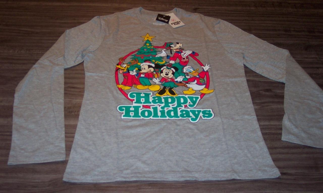 This is a Walt Disney MICKEY MOUSE MINNIE MOUSE GOOFY DONALD DUCK PLUTO in SANTA HAT CHRISTMAS Long Sleeve T-shirt. It is a size SMALL, and it is NEW w/ TAG. It is 19 3/4 inches from armpit to armpit and 27 inches in length. The print is made to look vintage. Combine auctions to save on shipping. D2AG