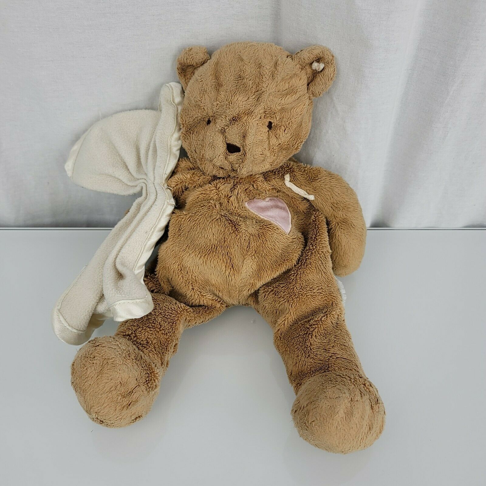 Vintage Eden Brown Tan Teddy Bear Cream Security Blanket Pink Satin Heart Plush