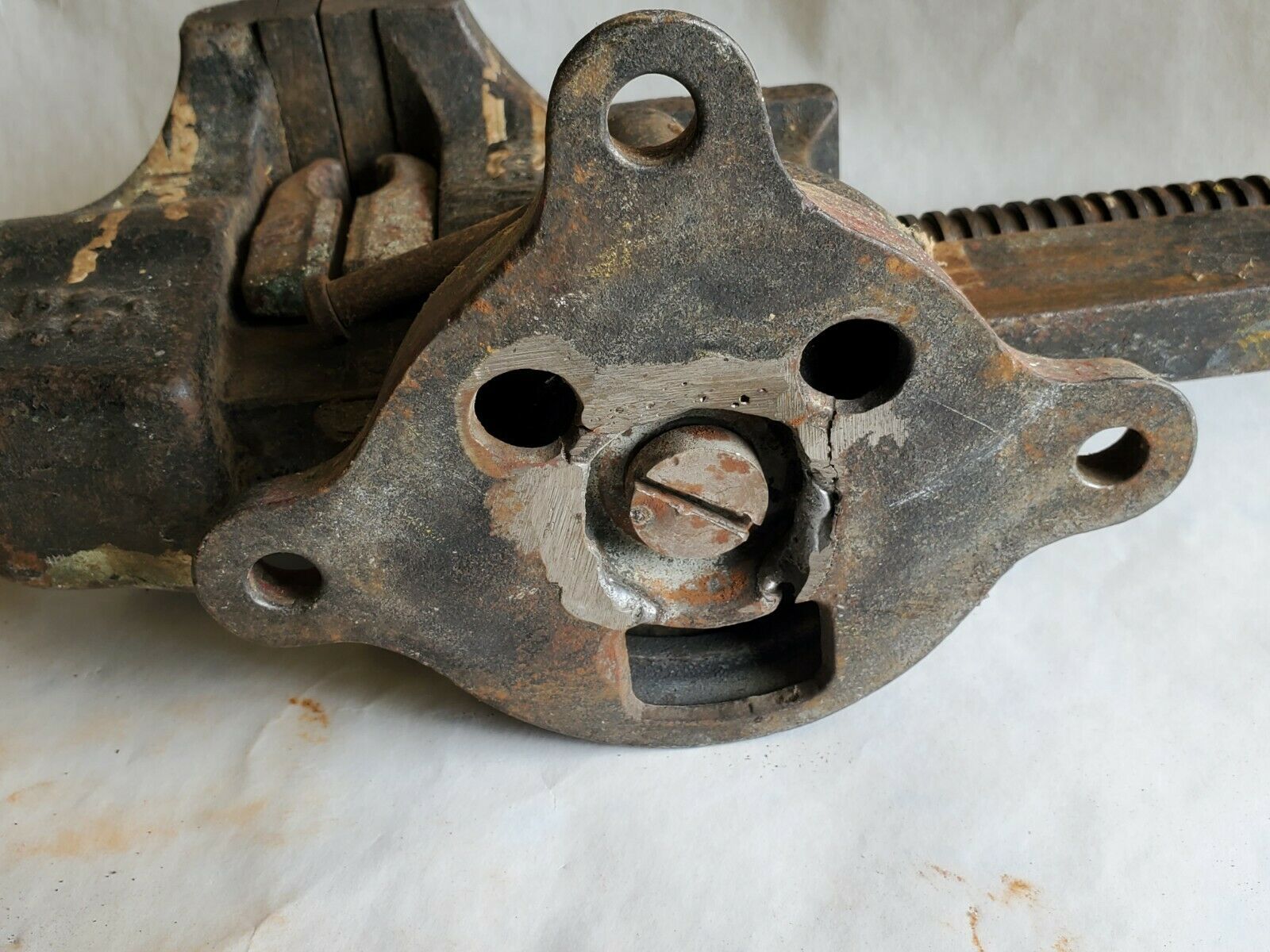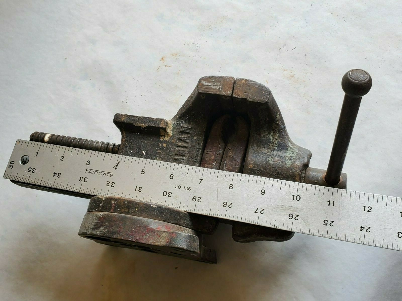 Vintage Columbian Vise Bench Table Mount No. 143 has 3-1/2" wide jaws and second set of pipe jaws it appears to be a repair to the bottom of the base see pictures