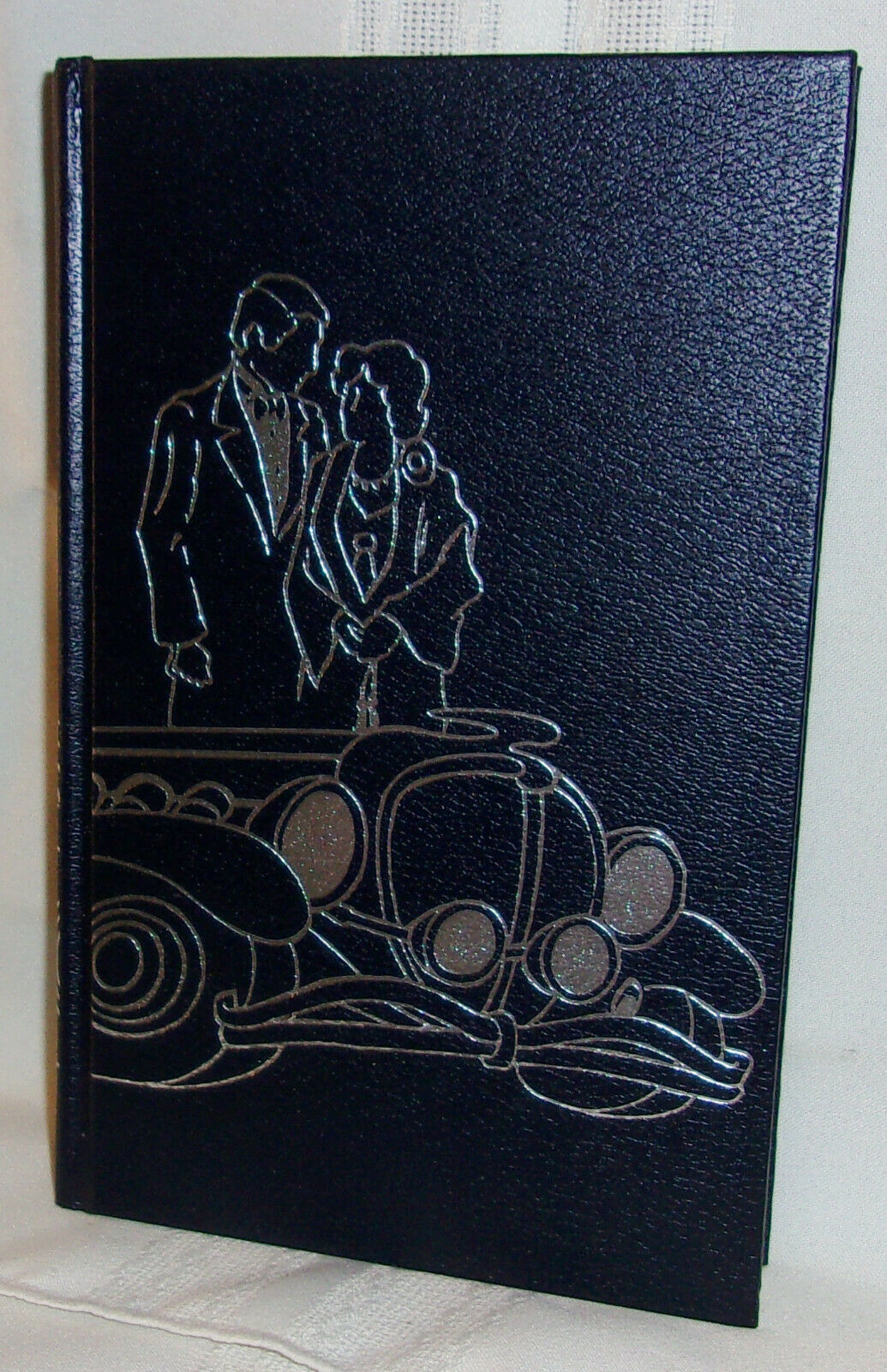 Very tight and fine in black leatherette with silver embossed illustration wrapped around both covers and spine depicts the formally dressed detecting pair sporting a 1928 lengthy classic car; in a near fine dust jacket with the same cover illustration more flushed out, in silver, red and black; original $18.95 printed price still intact to the front inner flap.