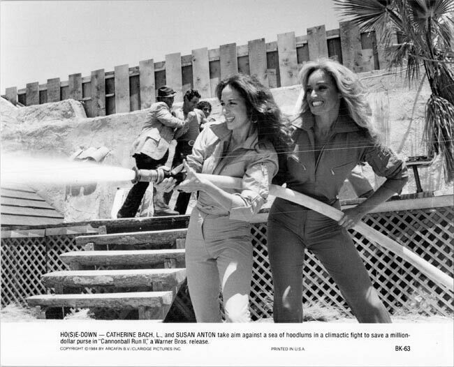 Cannonball Run II 8x10 photo 1984 movie Catherine Bach Susan Anton with hose