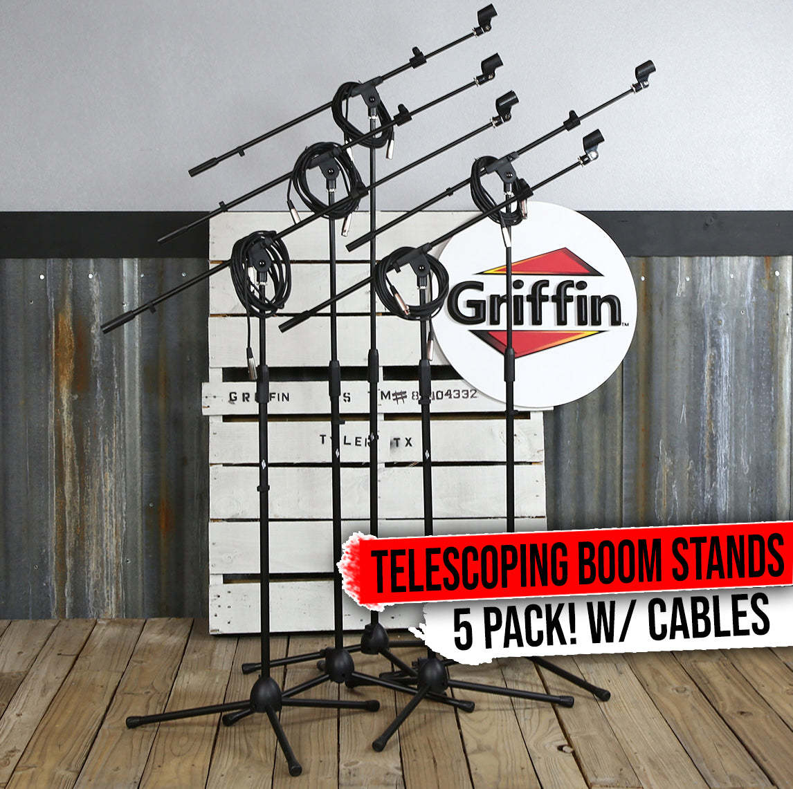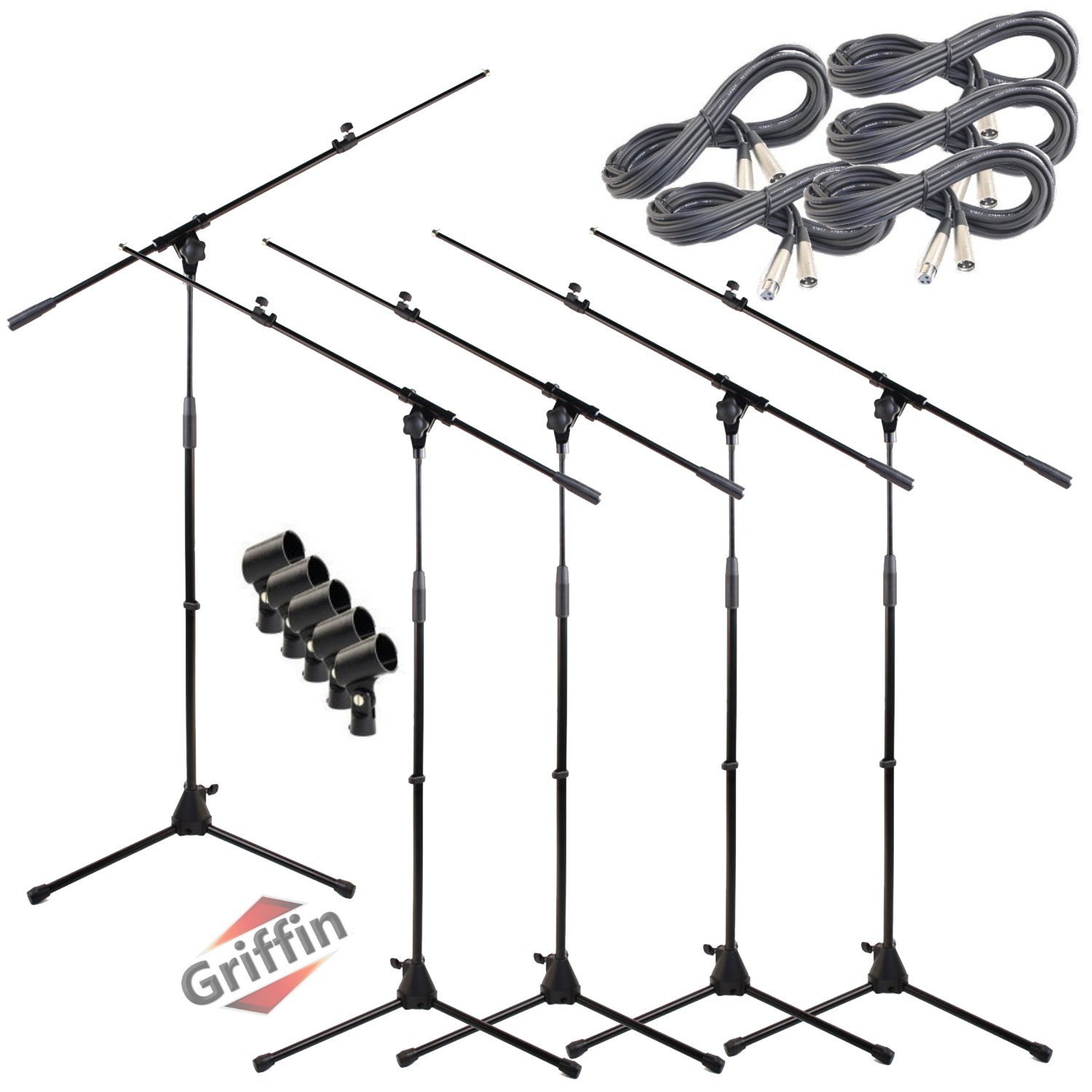 GRIFFIN Microphone Stand (Pack of 5) with XLR Cables & Mic Clip | Telescoping Bo