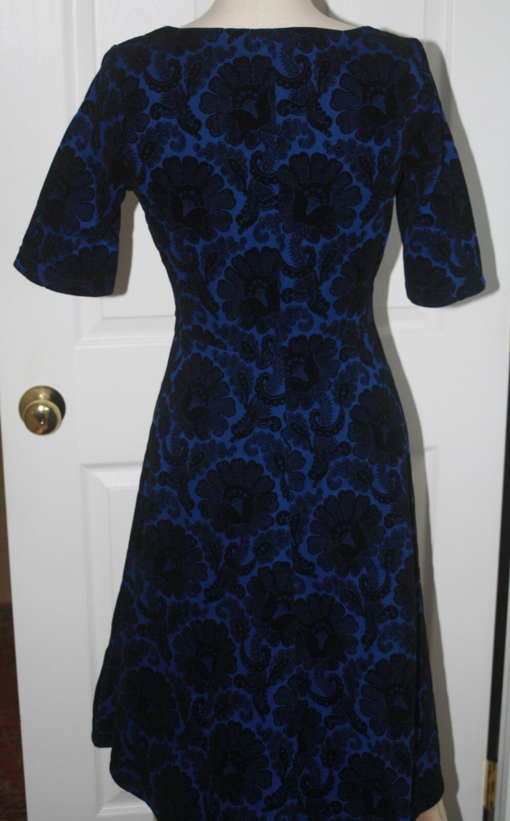 Lands End Women's Ponte Boatneck Flock Dress Wharf Blue Floral New.