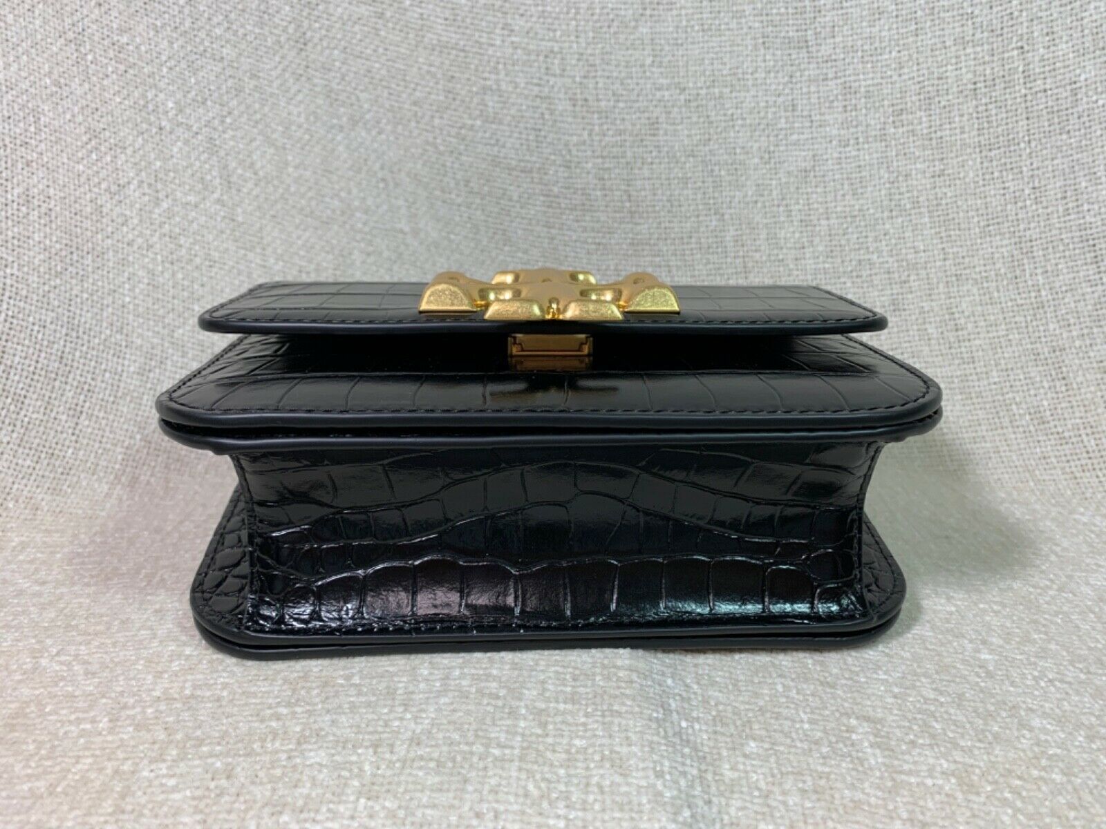 You Are Looking At A Very Adorable Black Croc Embossed Leather Eleanor Small Convertible Shoulder Bag/Cross Body Bag By Tory Burch