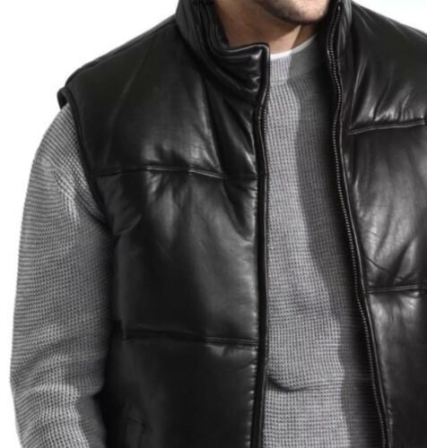 Men's Black -padded Lambskin Leather Vest 3XL and similar items