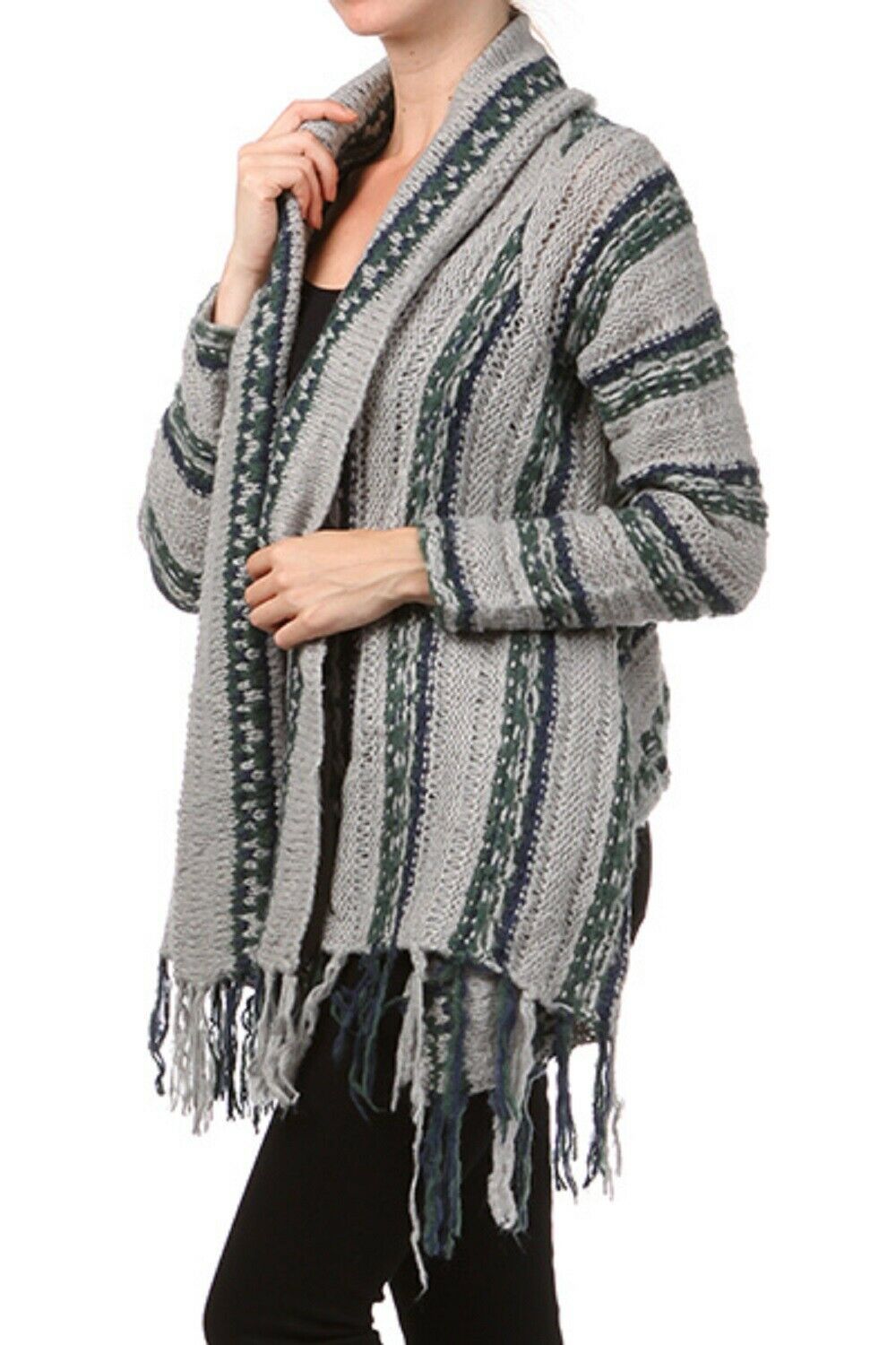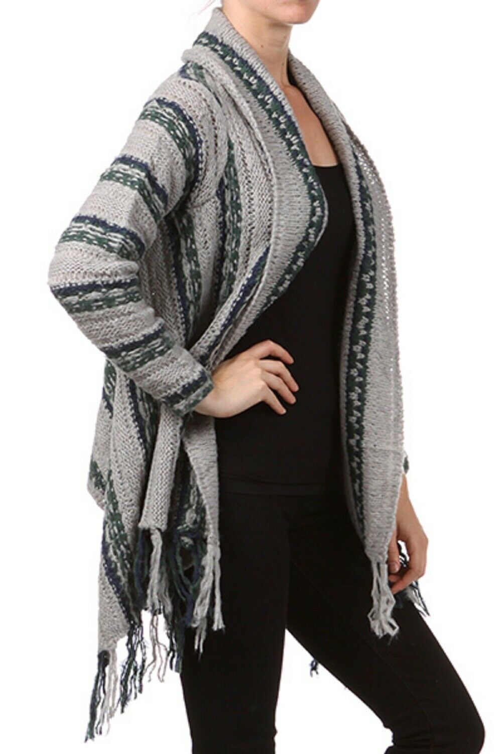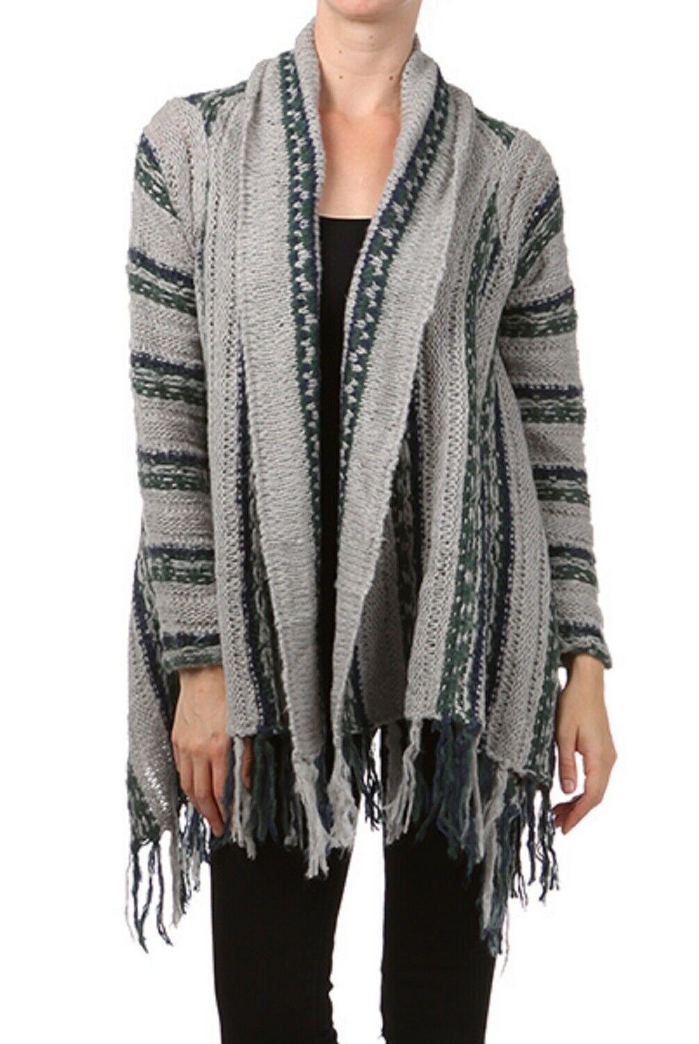 M.Rena Open Fringe Long Sleeve Knitted Cardigan