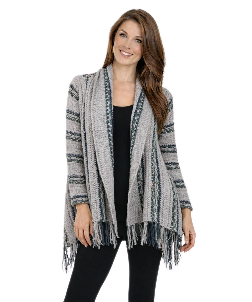 M. Rena Open Fringe Long Sleeve Knitted Cardigan