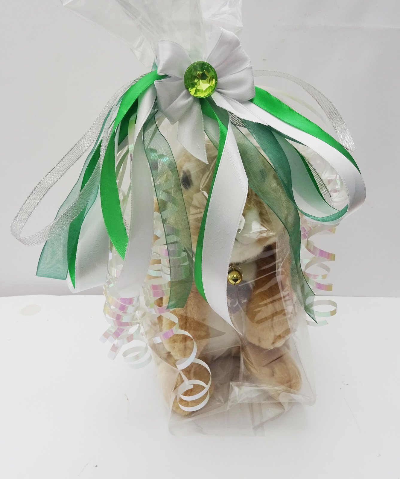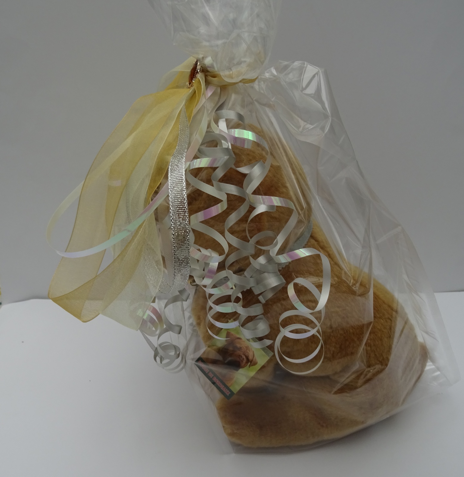 fitted with a collar with a personalised tag attached, then we wrap them in presentation wrapping topped with a decoration tied off with pretty coloured ribbons, ribbon colours can be chosen if you have a preference.