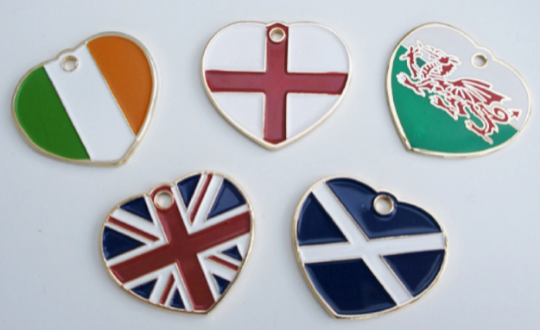 Tags are available in, heart or bone shape in black, red, bright blue, light blue, pink, purple, green, gold and silver