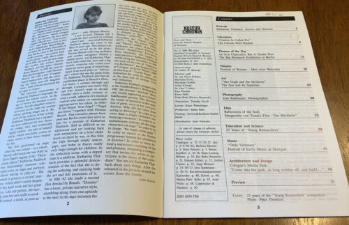 Kultur Chronik 6/1989 English Edition. Ex-lib in good condition. News and views from the Federal Republic of Germany. Feel free to email with questions. I do combine shipping on multiple purchases. Have a great day!