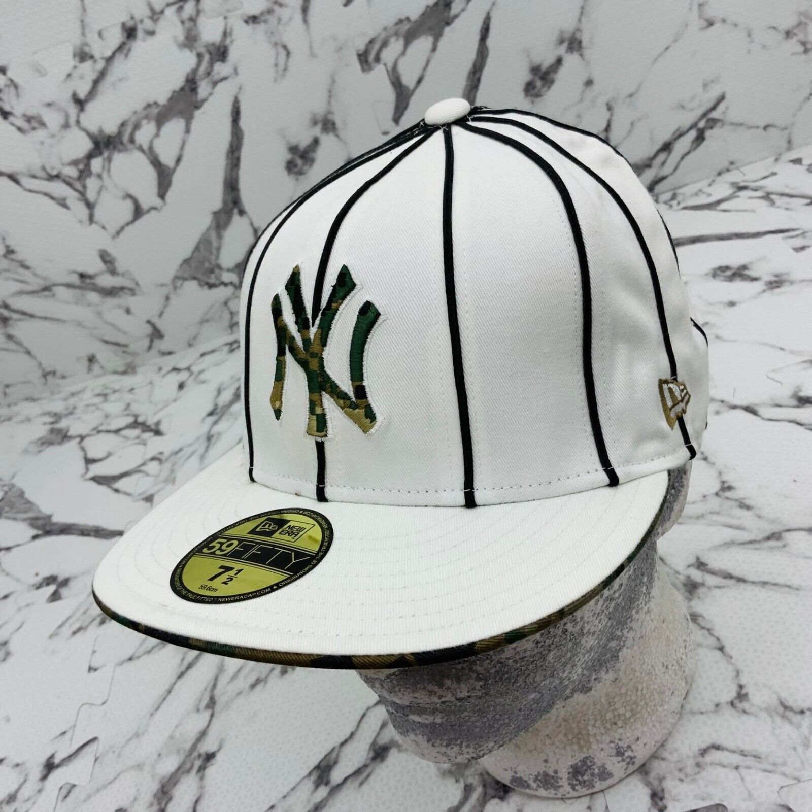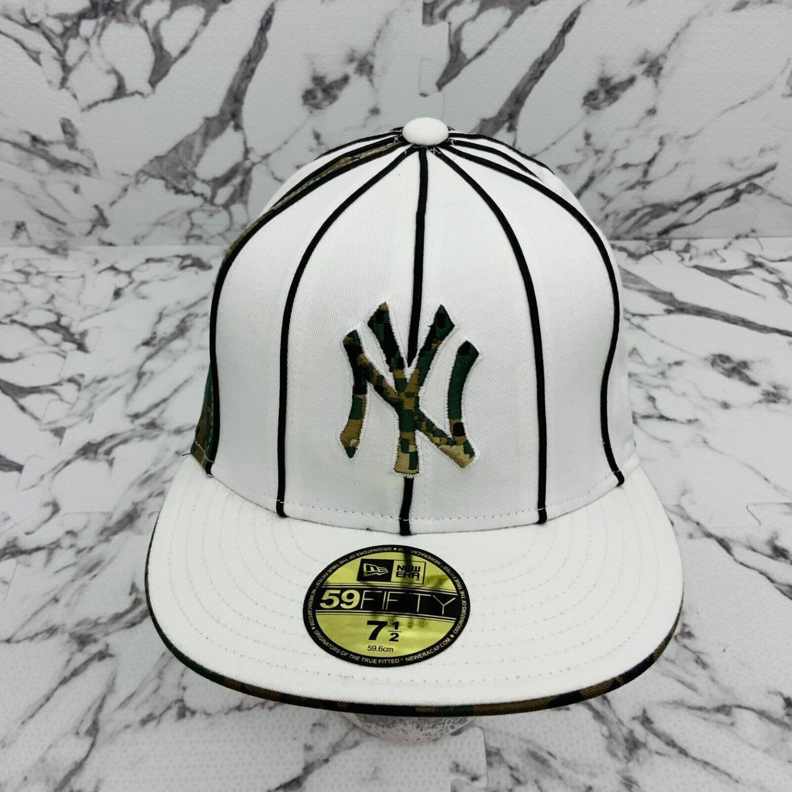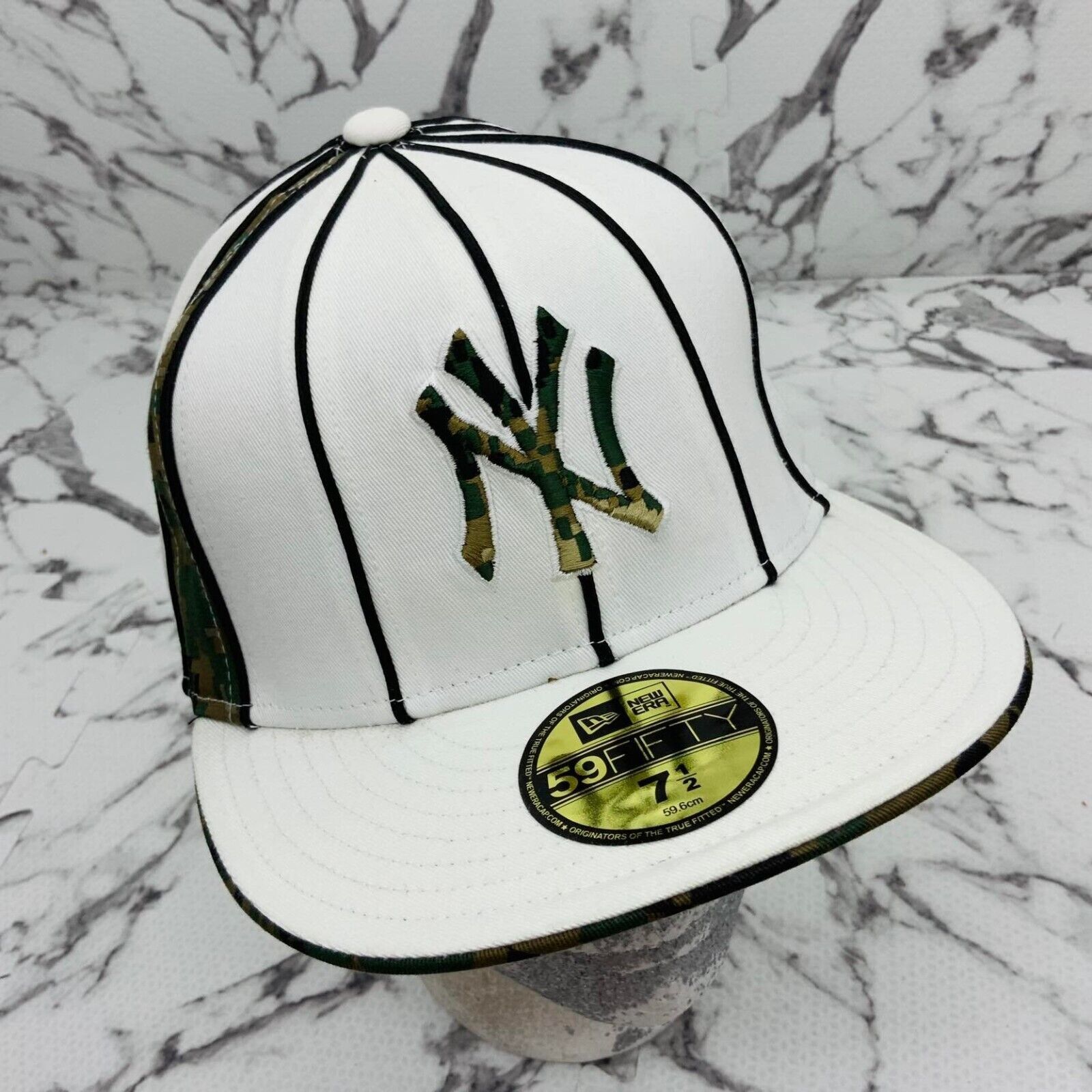 New Era Cap MLB NY Yankees White | Black Pipping | Digital Woodland Camo 59FIFTY