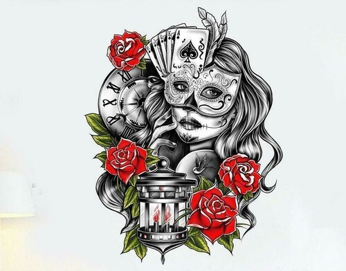 475.Poster sexy pin-up celebrates Day of the Dead.Home bedroom decor.Interior