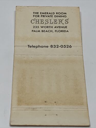 Front Strike Matchbook Cover Chesler’s Restaurant Palm Beach, Fl gmg unstruck