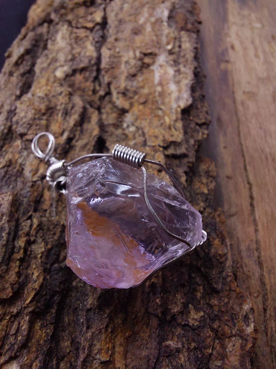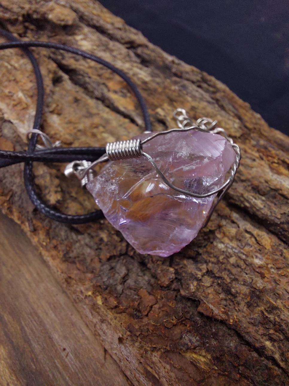 Raw Pendants Quartz Amethyst with leather string or leather cord free form natur
