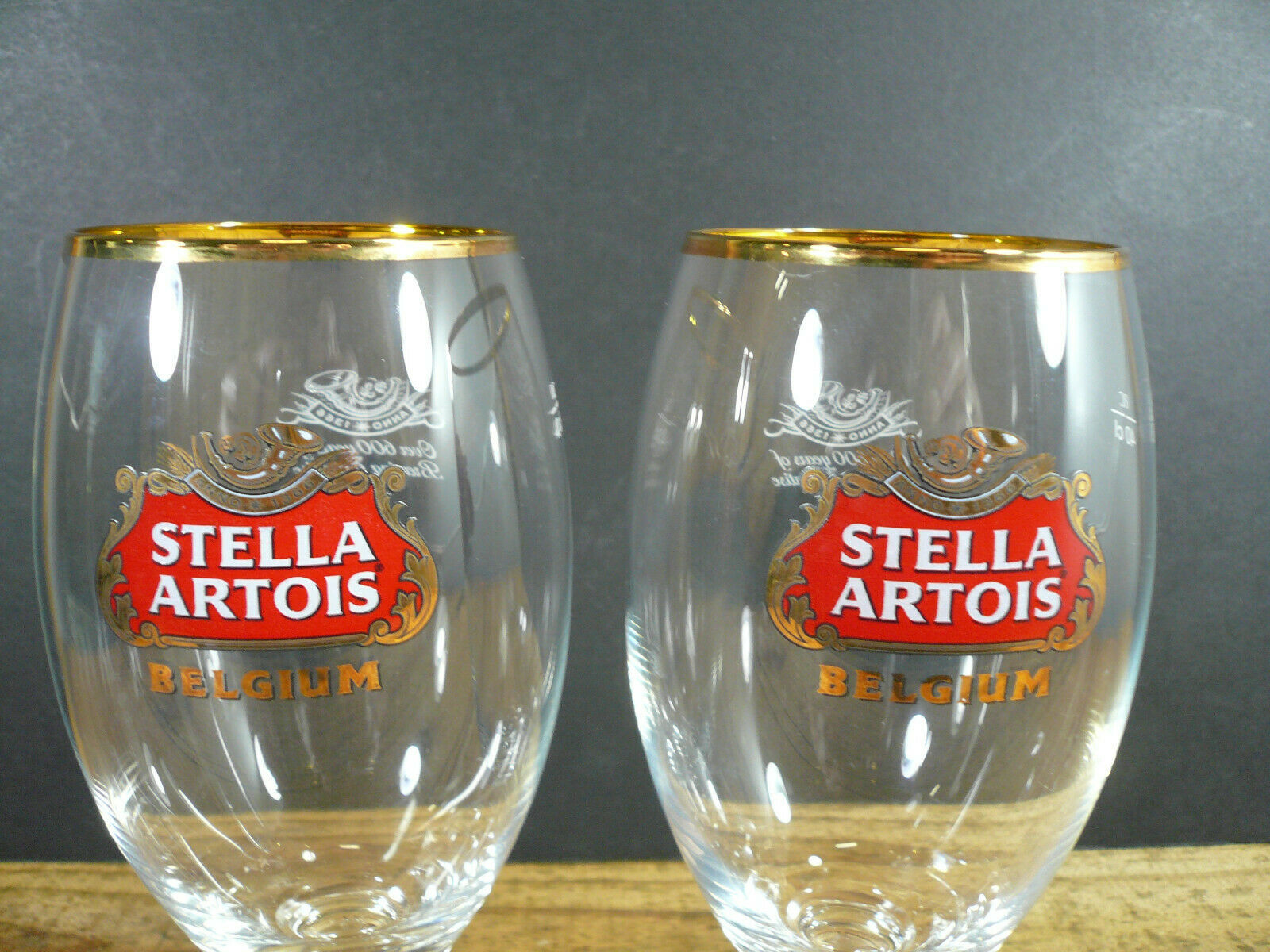 2 Stella Artois Chalice Beer Glass Gold Rim and similar items