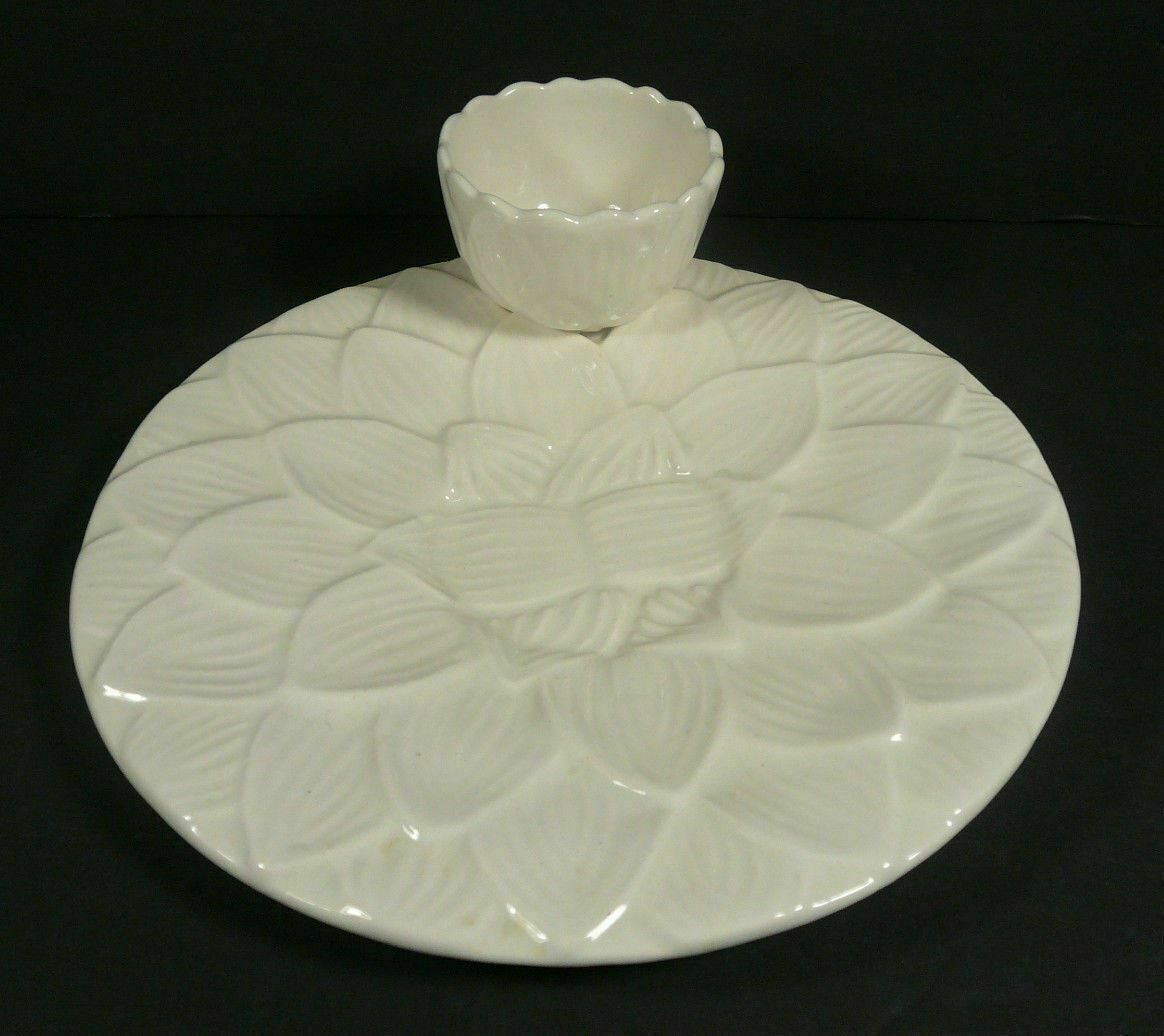 White Ceramic Artichoke Plate with Butter Bowl California USA