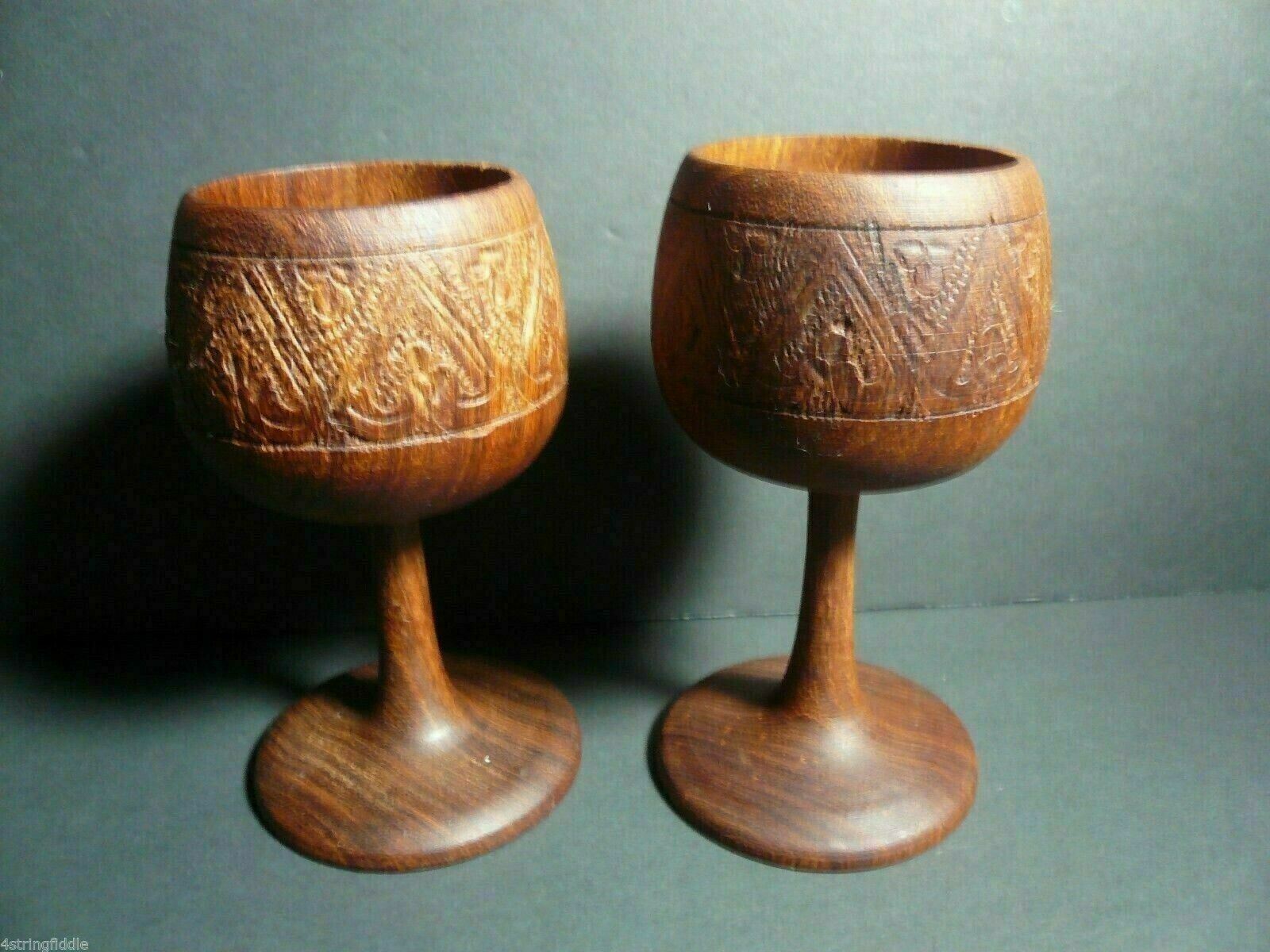 These are a nice pair teakwood wine goblets, they are a bit different in height and width.