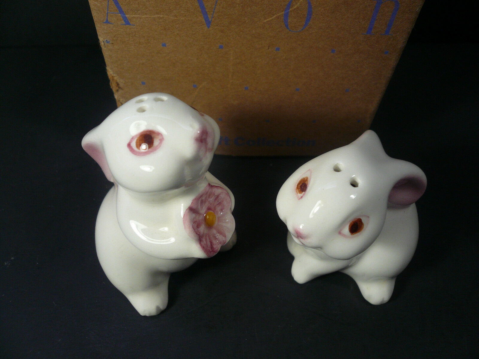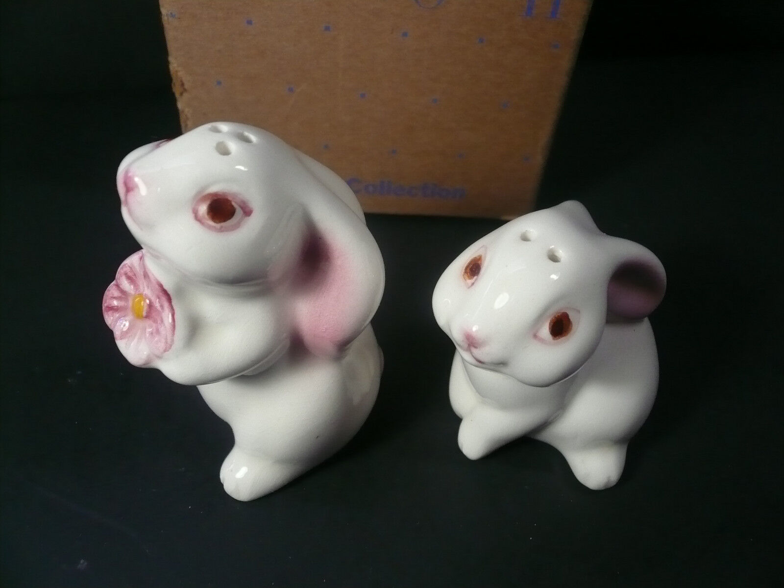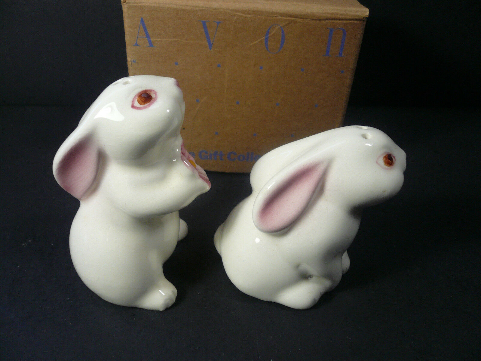 New Avon Pink Eye Ear White Bunny Rabbit Salt and Pepper Shaker Set (AN.132)