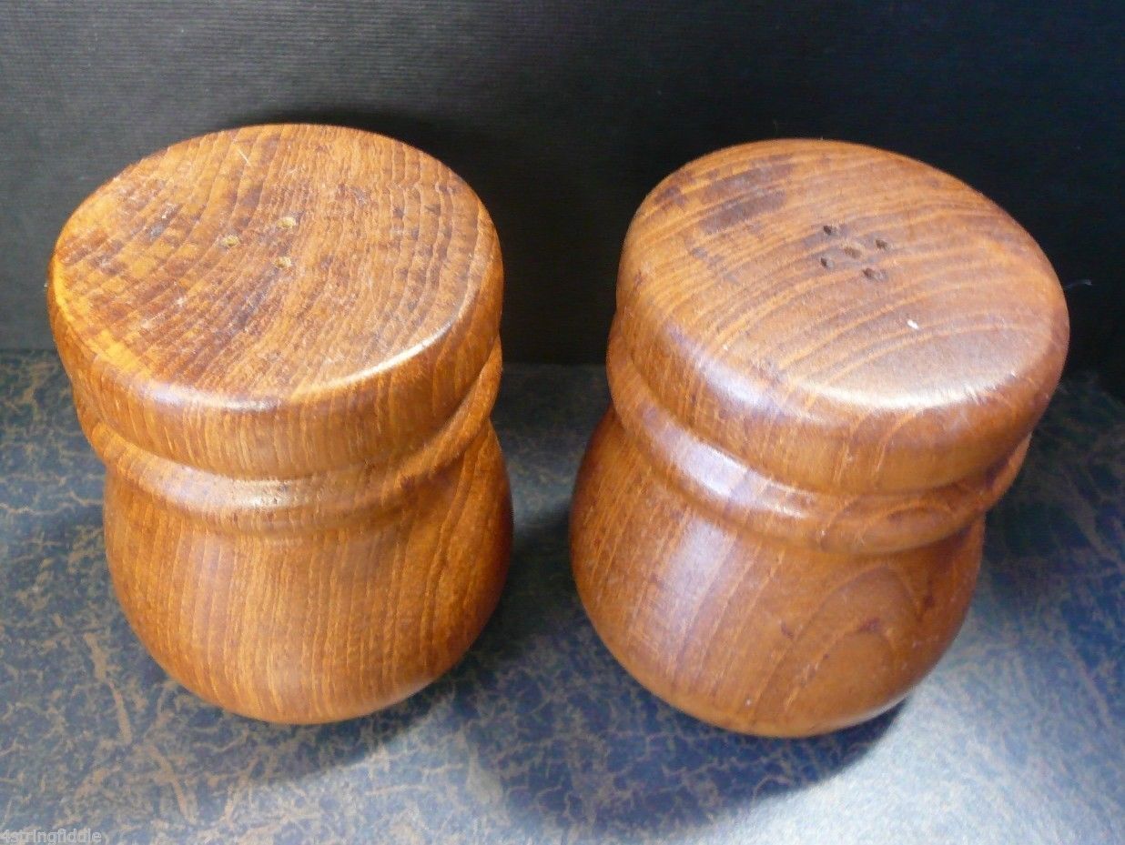 Pair of Mid Century Modern Wood Salt & Pepper Shakers 1970's