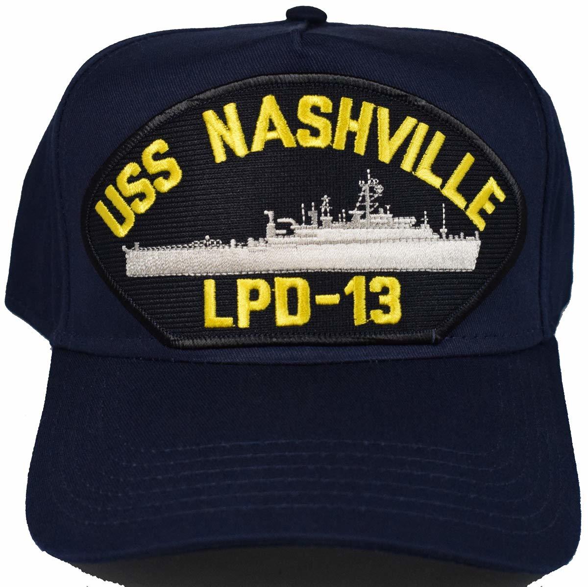 USS NASHVILLE LPD-13 SHIP HAT - NAVY BLUE - Veteran Owned Business. Navy Blue Cap High Detail and Impact - USS NASHVILLE LPD-13 SHIP HAT . 8 Rows Stitching on Visor and Pro Stitch on Crown 5 panel hat. USS NASHVILLE LPD-13 SHIP HAT - Adjustable Size, Navy Blue Golf Style. HatnPatch Is THE Veteran Owned and Operated Family Business - 2 Generations of Retired Marines - We Ship Your Order Within 24 Hours And Usually The SAME DAY!