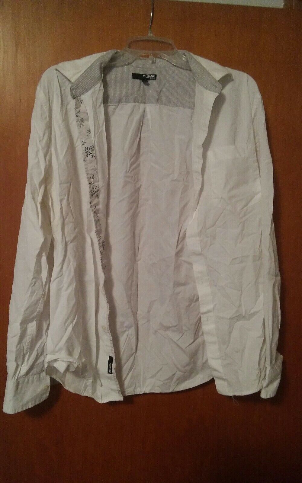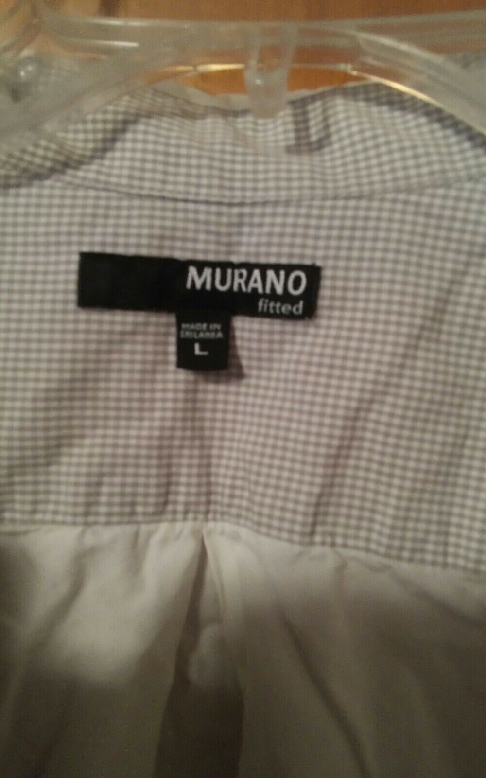 000 Mens Large Fitted Murano Button Down Long Sleeve White Shirt