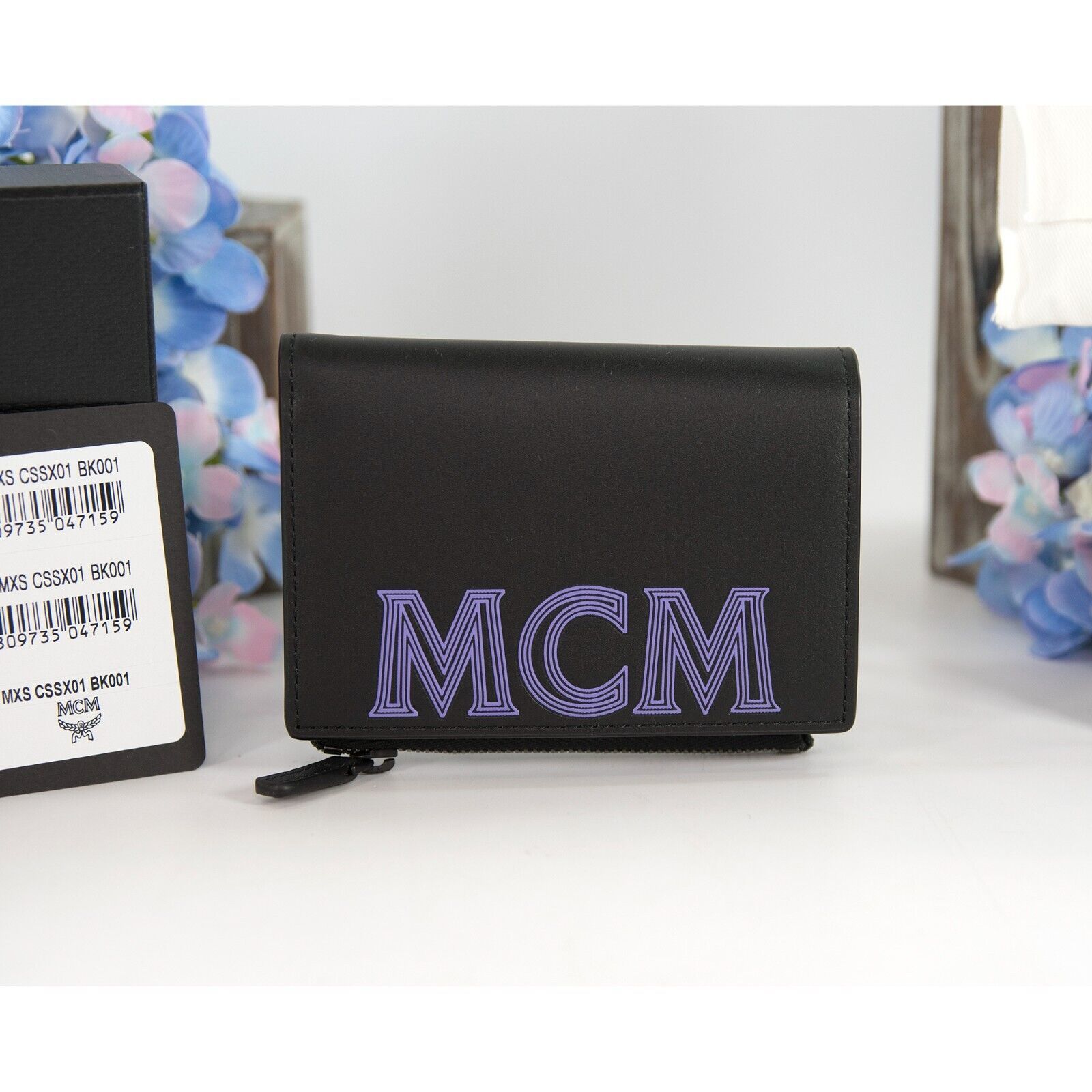 MCM Color Splash Black Dahlia Purple Leather Bifold Compact Wallet NWT