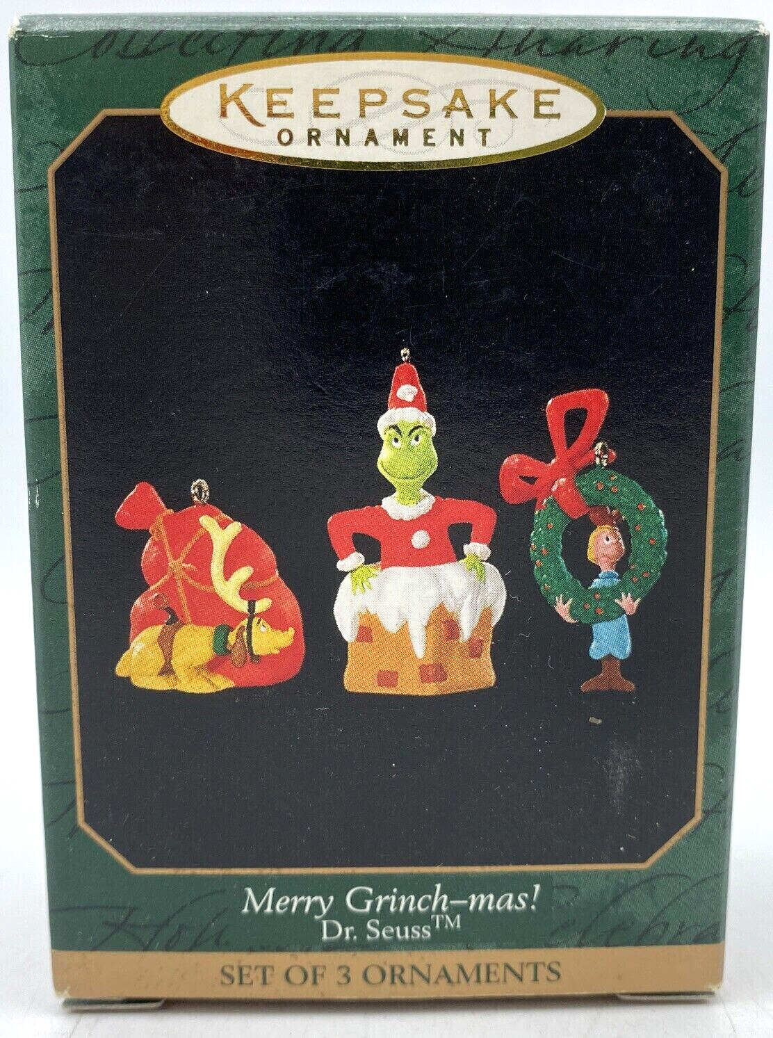 HALLMARK Keepsake "Merry Grinch-Mas" Set of 3 Mini Ornaments 1999 Dr Seuss