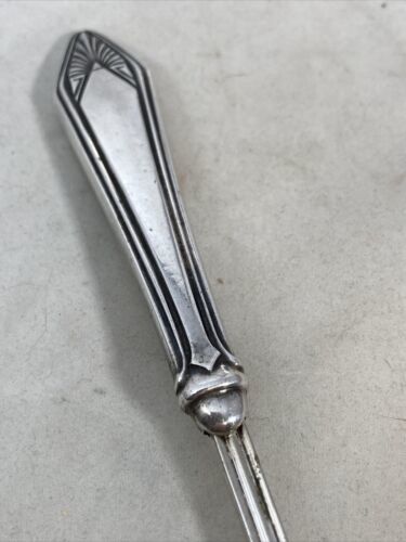 Sterling Silver Handled 8 1/2” Cold Meat Serving Fork Unknown Design Four Tines