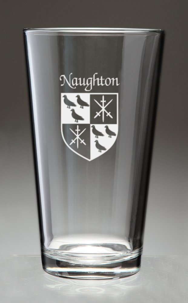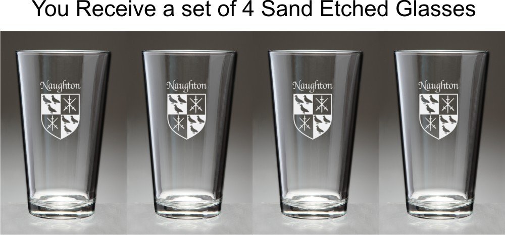 Naughton Irish Coat of Arms Pint Glasses - Set of 4 (Sand Etched)