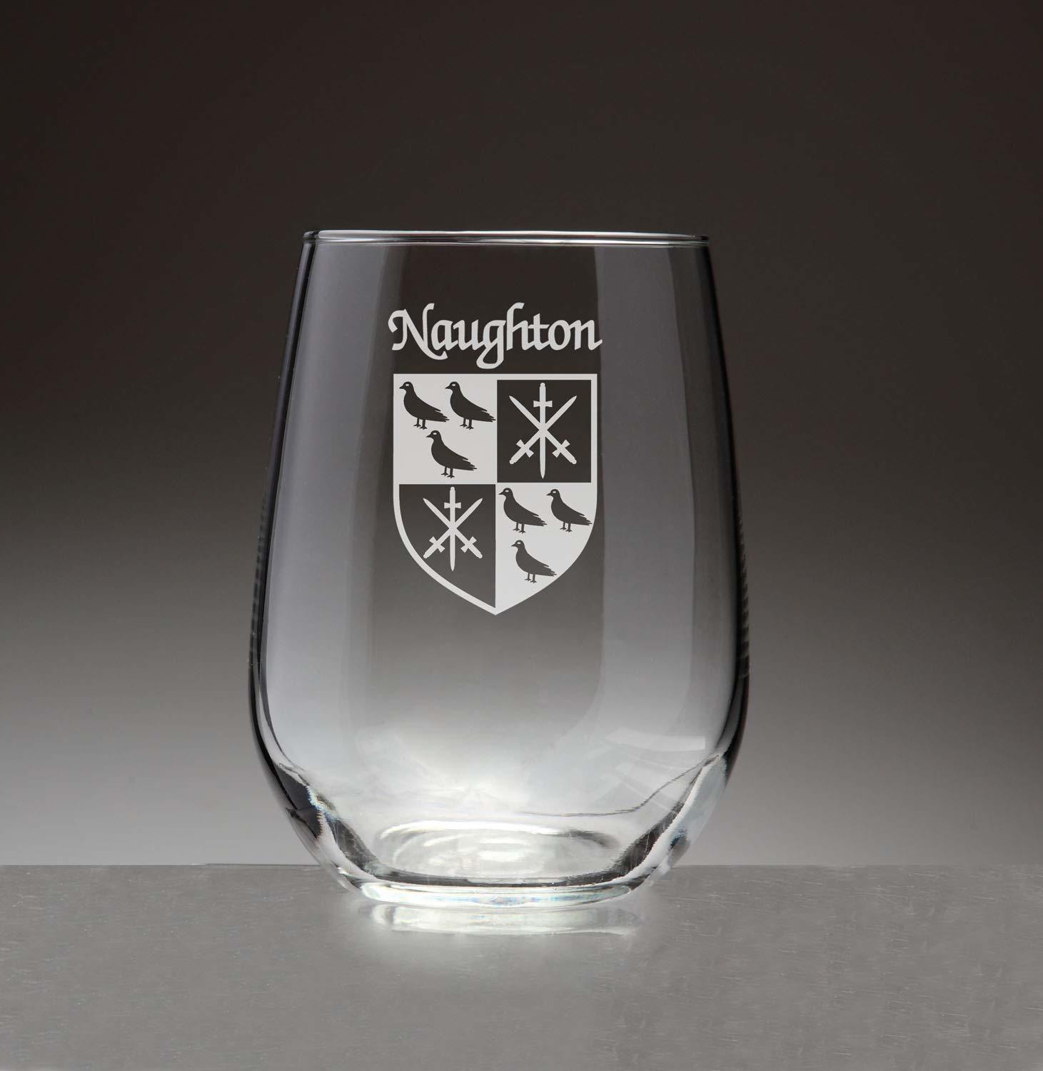 Naughton Irish Coat of Arms Stemless Wine Glasses (Sand Etched) |