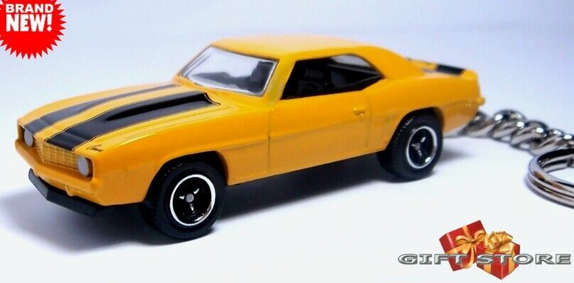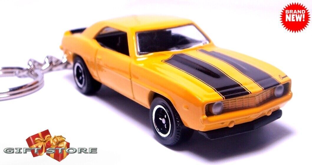 RARE! KEY CHAIN 69/70 YELLOW BLACK CHEVY CAMARO CHEVROLET CUSTOM LIMITED EDITION