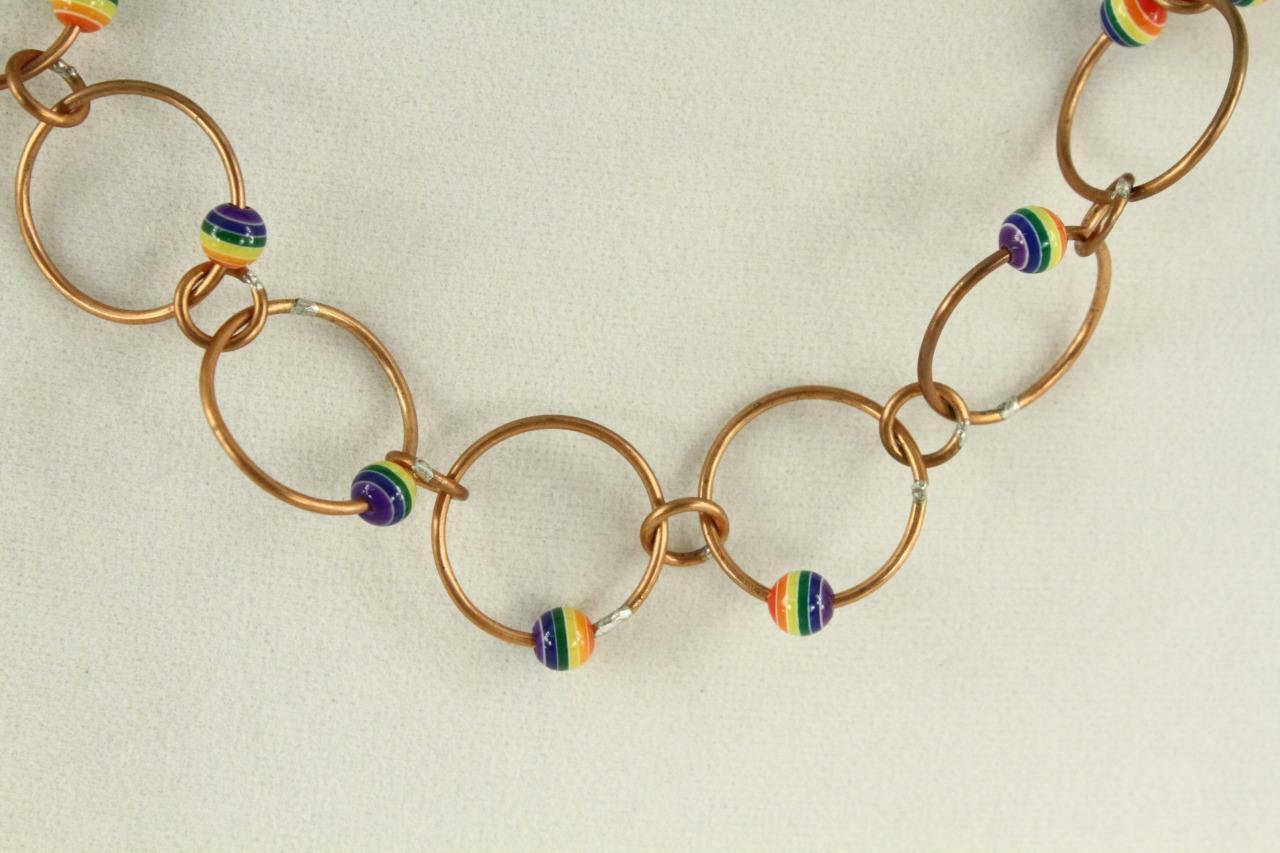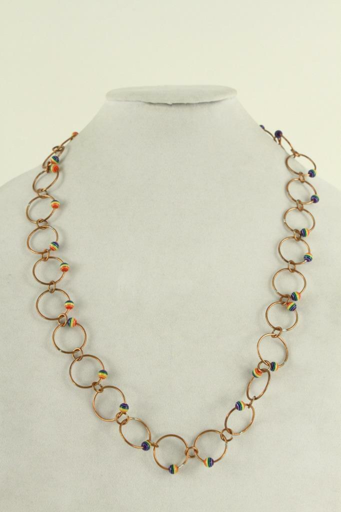 MODERN Artisan Jewelry COPPER Circle Links Rainbow Beads Necklace Bracelet