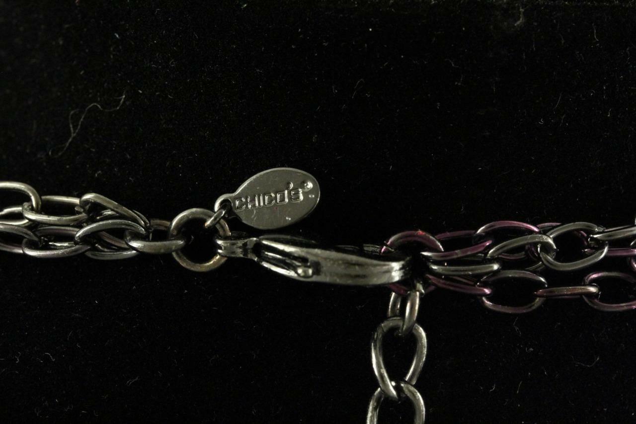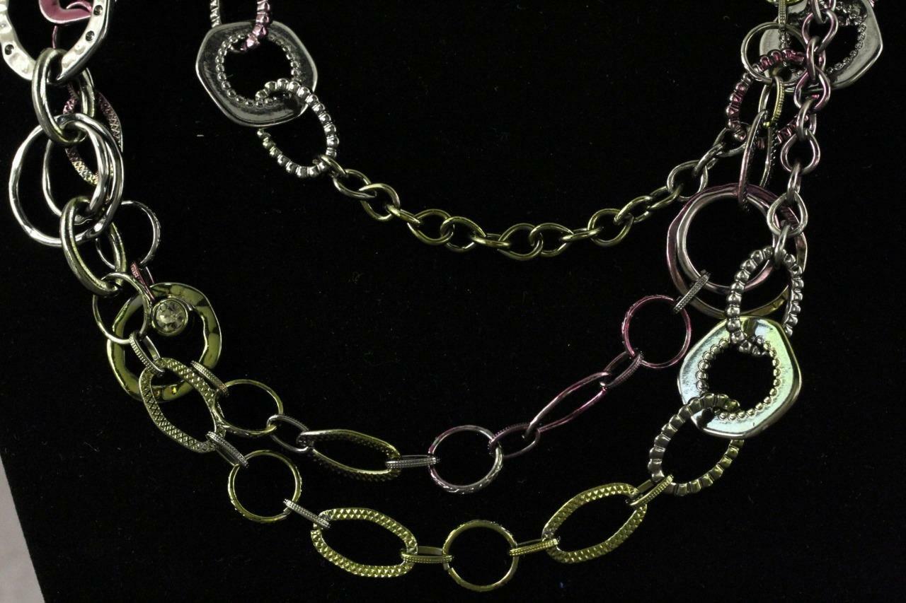 MODERN Costume Jewelry CHICOS Bold Black Green Purple Metallic Link Necklace. Chunky metallic three strand necklace.