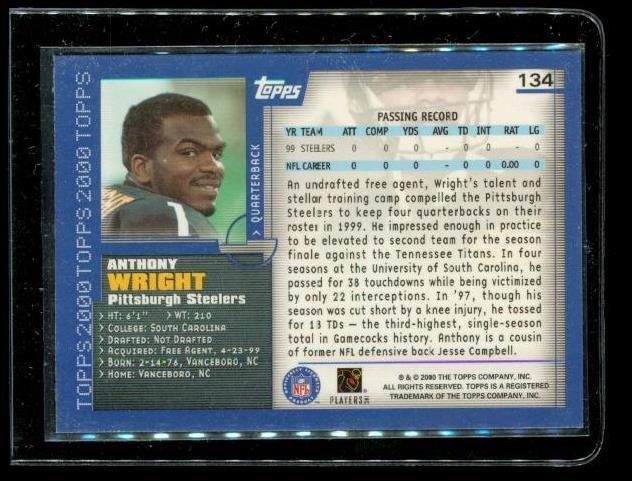 Vintage 2000 TOPPS ROOKIE Football Trading Card #134 ANTHONY WRIGHT Steelers