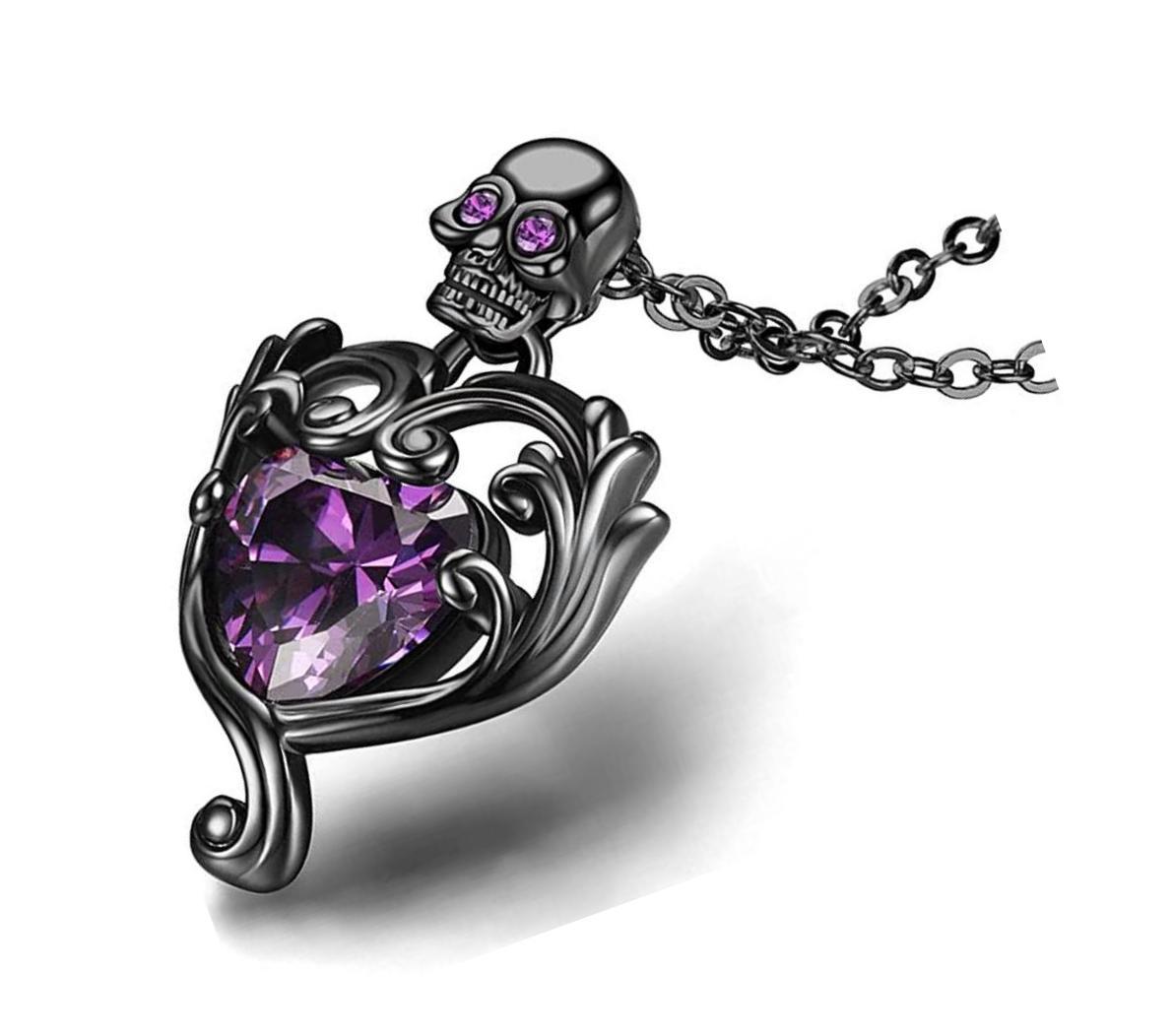Gothic Skull Black Angel Wing Heart purple Red Crystal