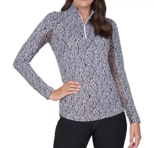 NWT Ladies IBKUL LESSIE WHITE MULTI Long Sleeve Mock Golf Shirt XS S M L XL XXL