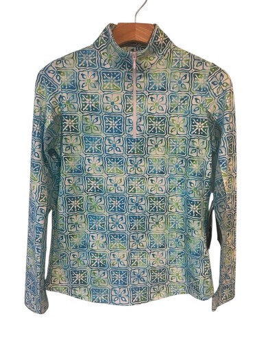 NWT - New With Tags Ladies Womens IBKUL formerly ICIKULS UPF 50+ LESSIE WHITE MULTI Long Sleeve Mock Golf Tennis Shirt Top - Sizes XS, SMALL, MEDIUM, LARGE, XL XXL