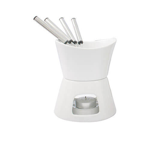 Includes 4 stainless steel forks, ceramic bowl base, and tealight candle