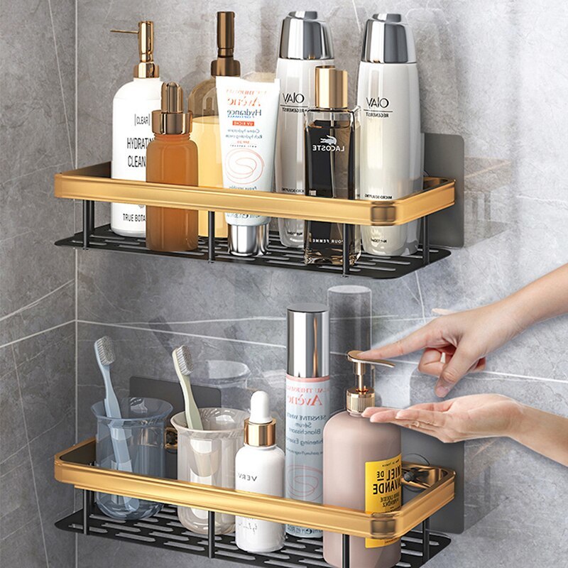 Black Gold Bathroom Storage Rack Double Layer Shelf Home Storage Organizer GIFT