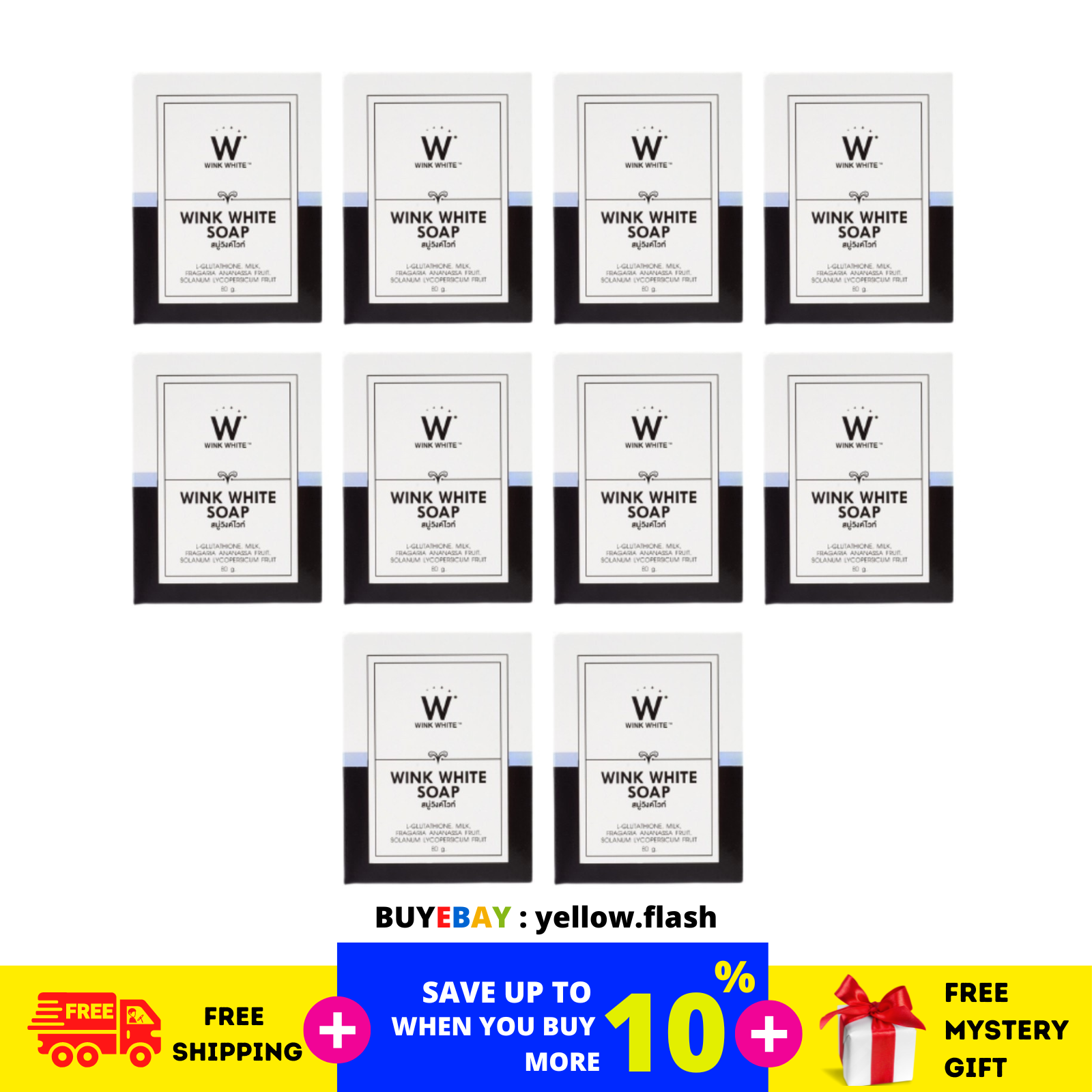 10 X Wink White Gluta Savon Blanchissant Corps Pur Visage Eclaircissant Peau Nettoyant 80g