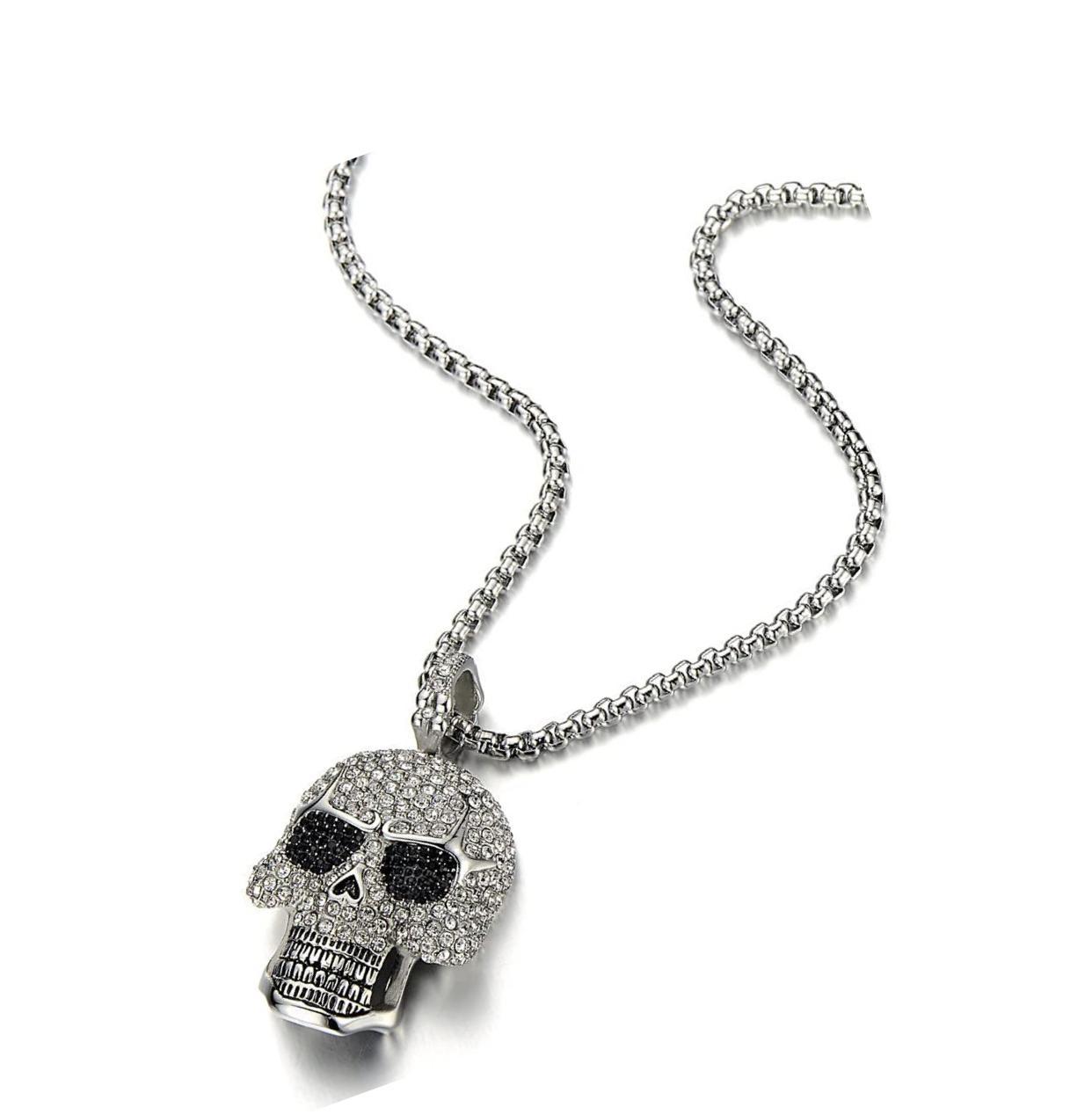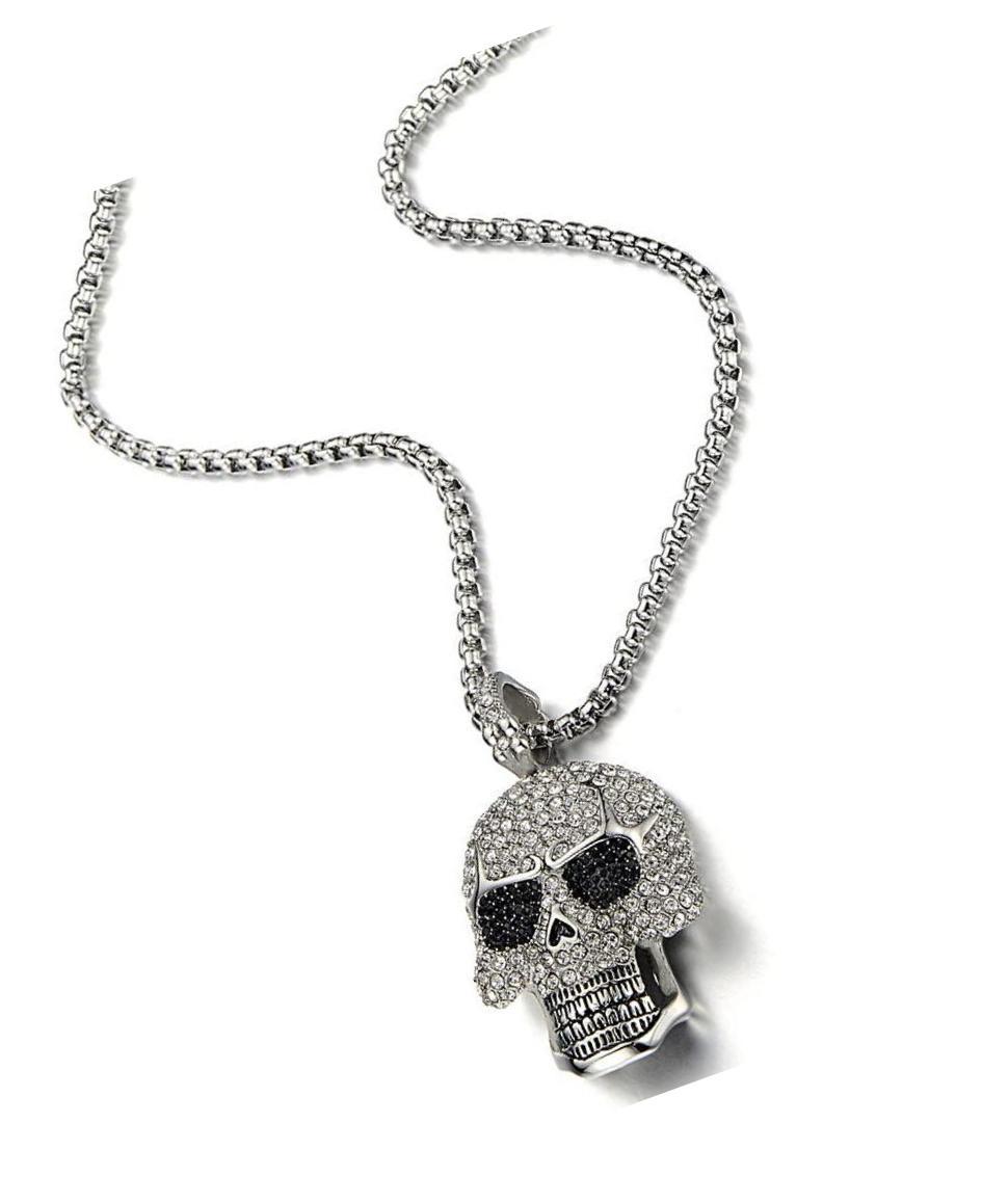 Steel Large Sugar Skull Pendant Necklace