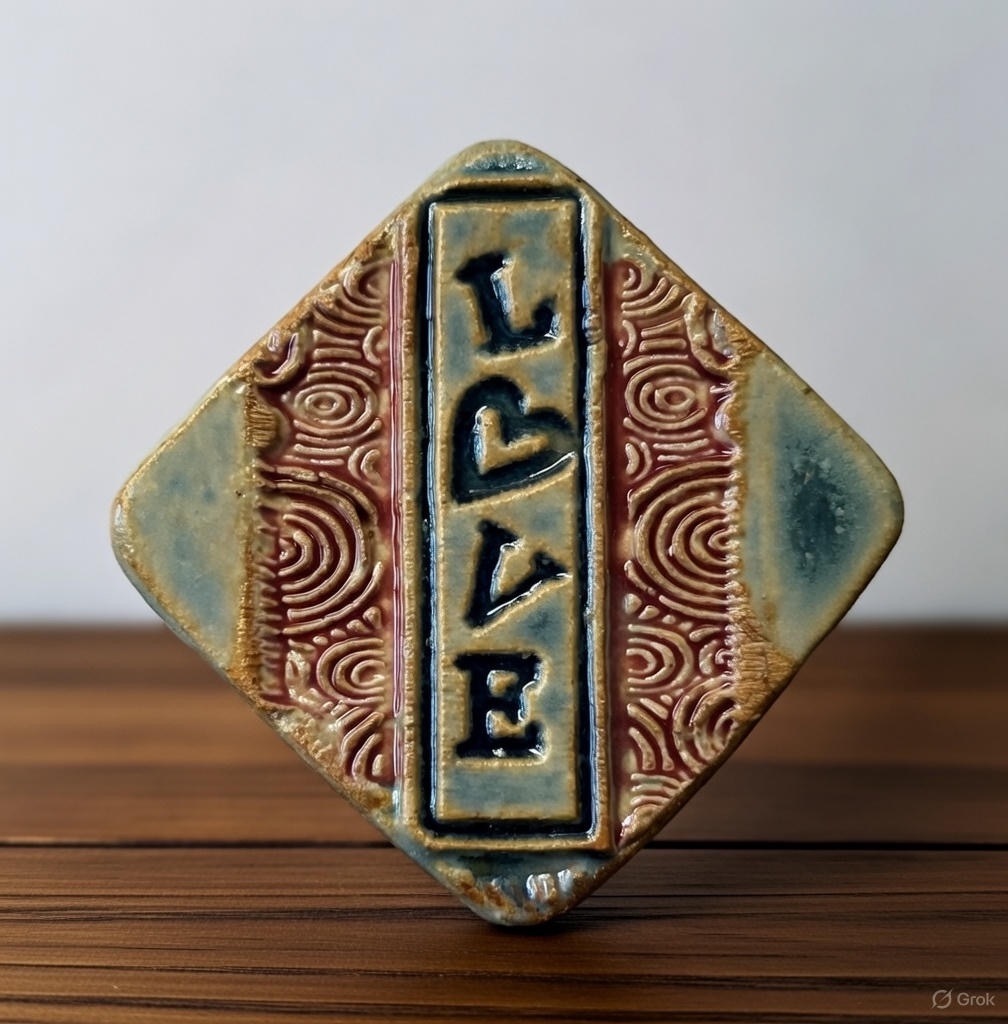 Each bead is glazed using my own blend of chemicals that will accept a high firing without washing out color, and then top coated with an antique overcoat.