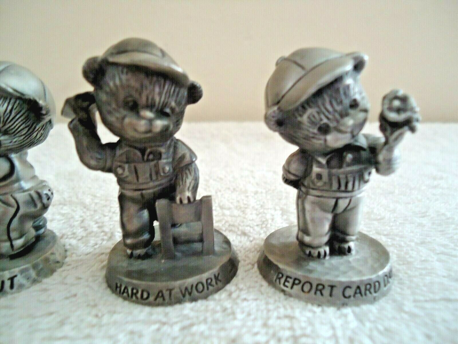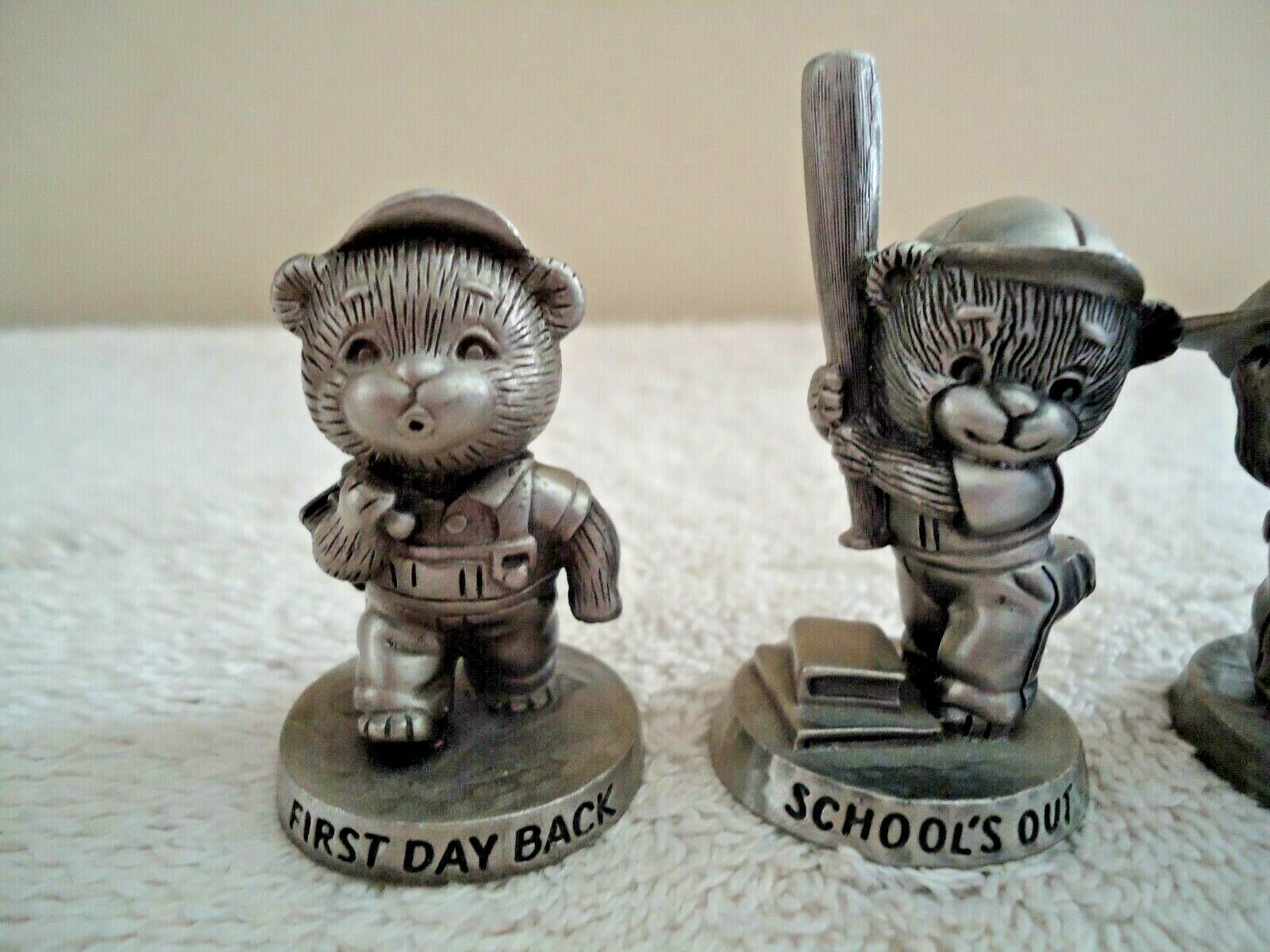 Vintage Set Of 4 1980's Avon Benjamin J Bearington Fine Pewter Bear Figurines