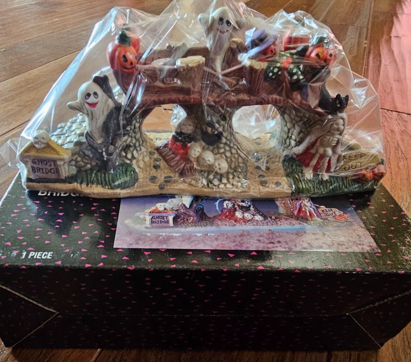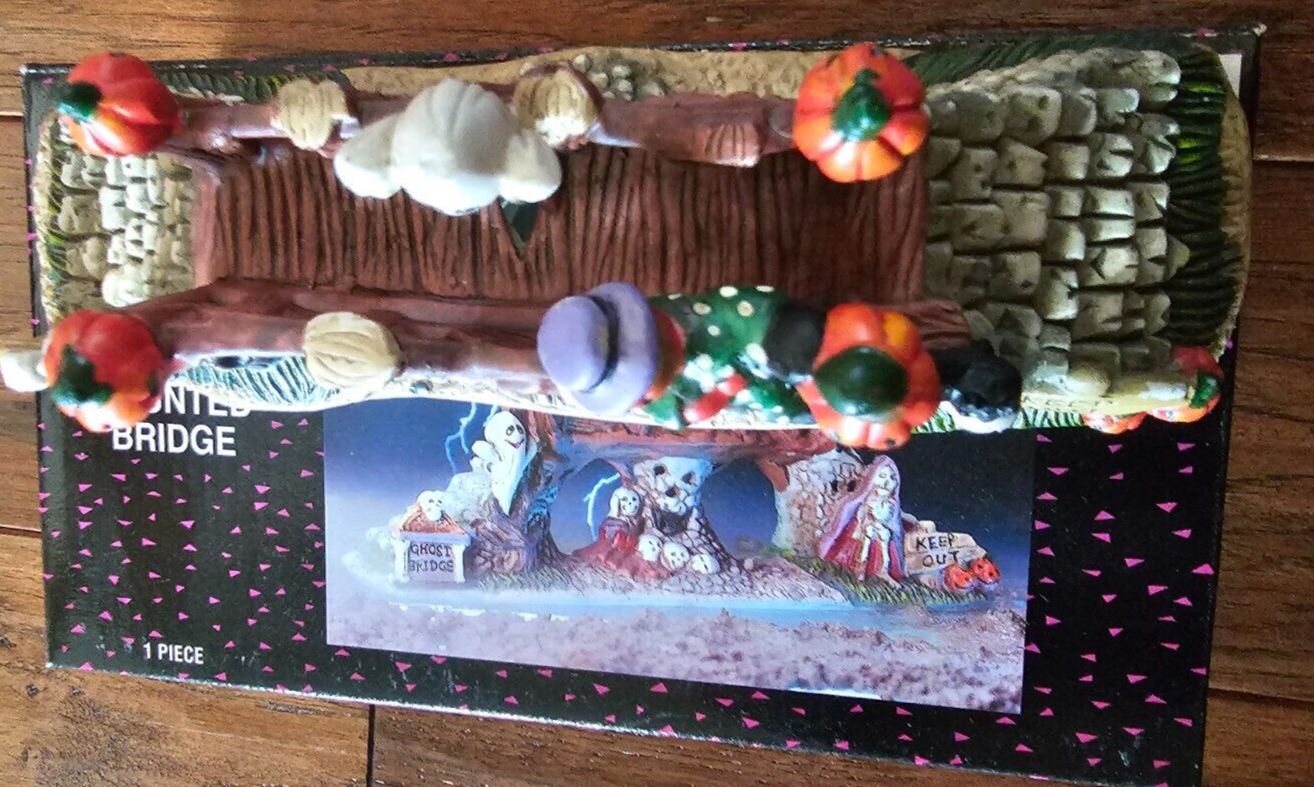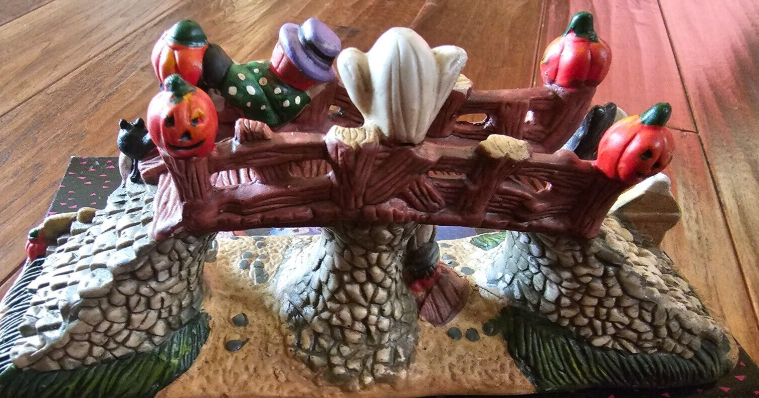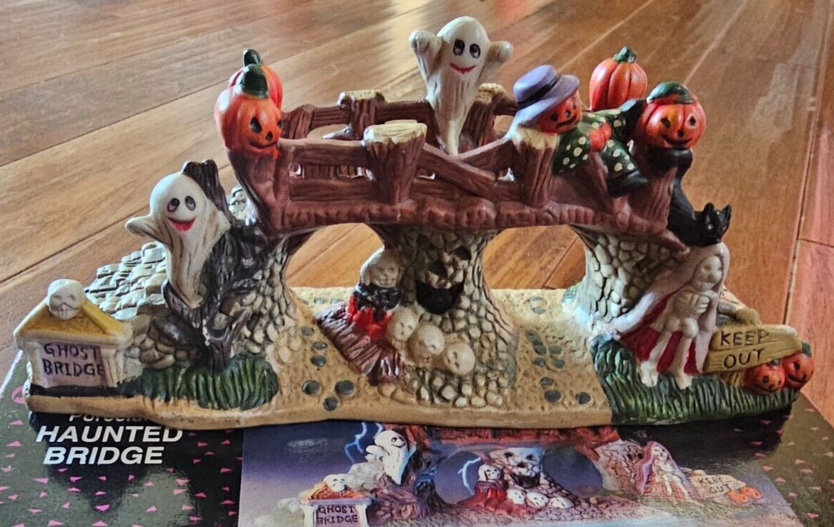 SPOOKY HOLLOW Porcelain Halloween Town Village Haunted GHOST BRIDGE 9" w/ Box