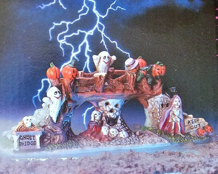 SPOOKY HOLLOW Porcelain Halloween Town Village Haunted GHOST BRIDGE 9" w/ Box SSLF