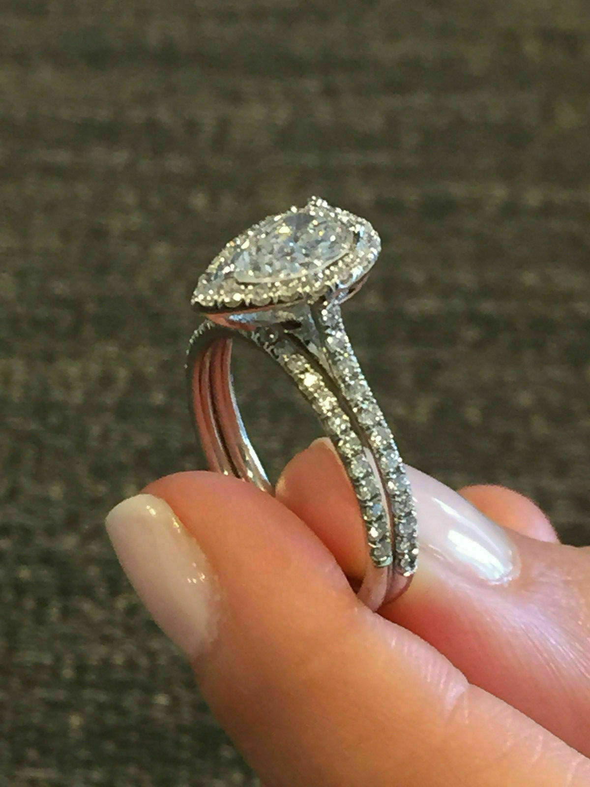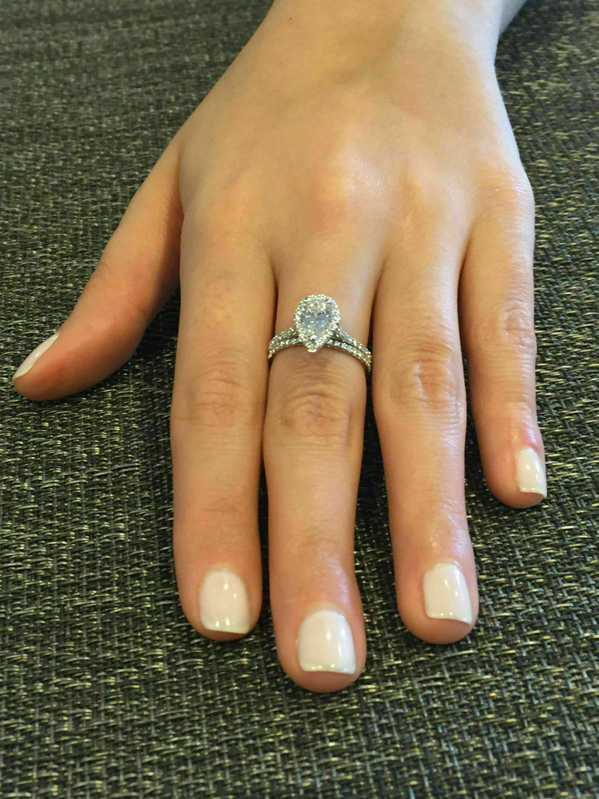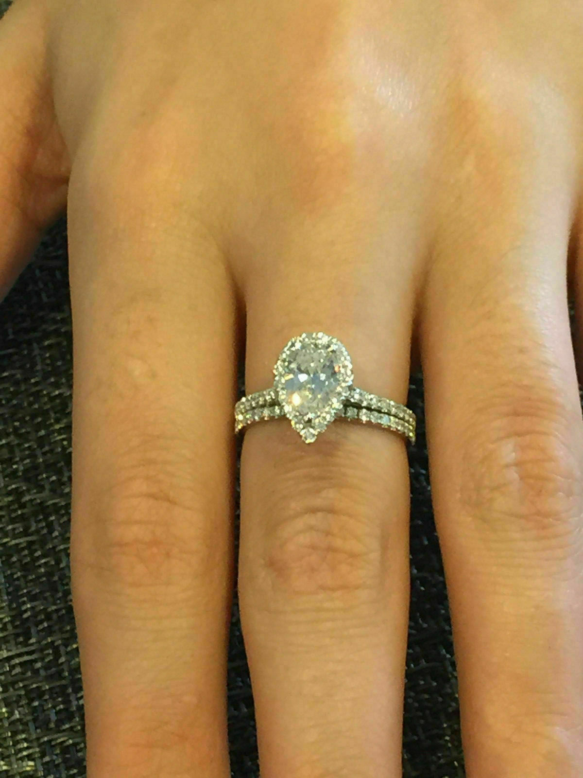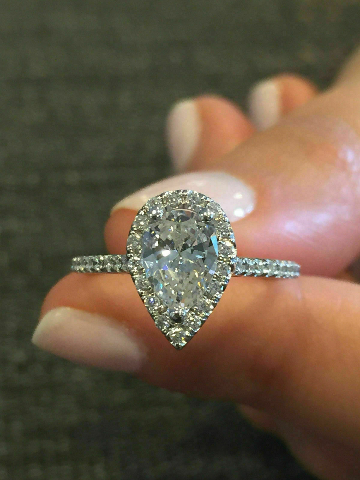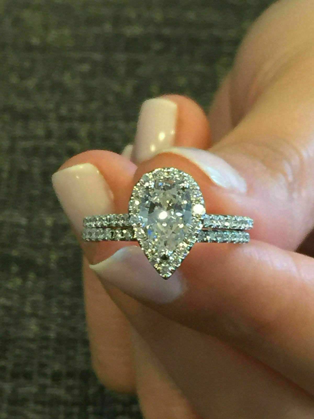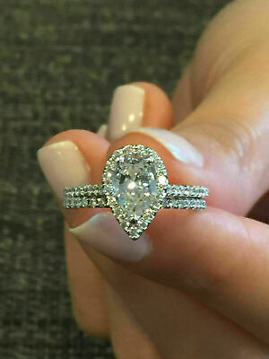 Anillo de compromiso y boda con circonita cúbica de corte pera de 3...