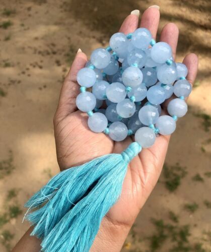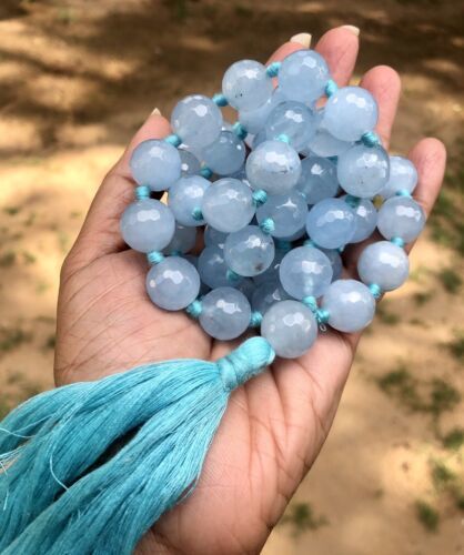 14 mm Rnd 54+1 Beads Original Aqua Blue Jade Jaap Rosary, Japa Mala Energized