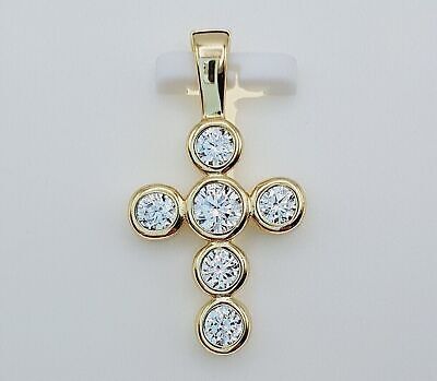 Pendente con ciondolo a forma di croce con castone a taglio rotondo da 2,50...